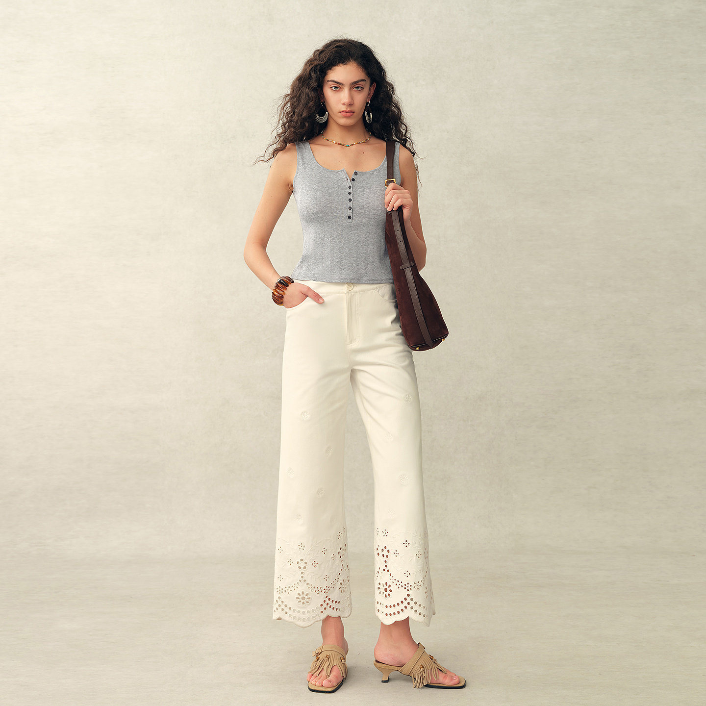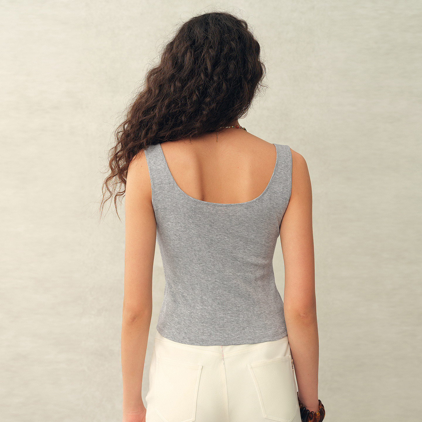 📚 Fabrique ESSENTIAL弹力爱心提花法式亨利领吊带背心