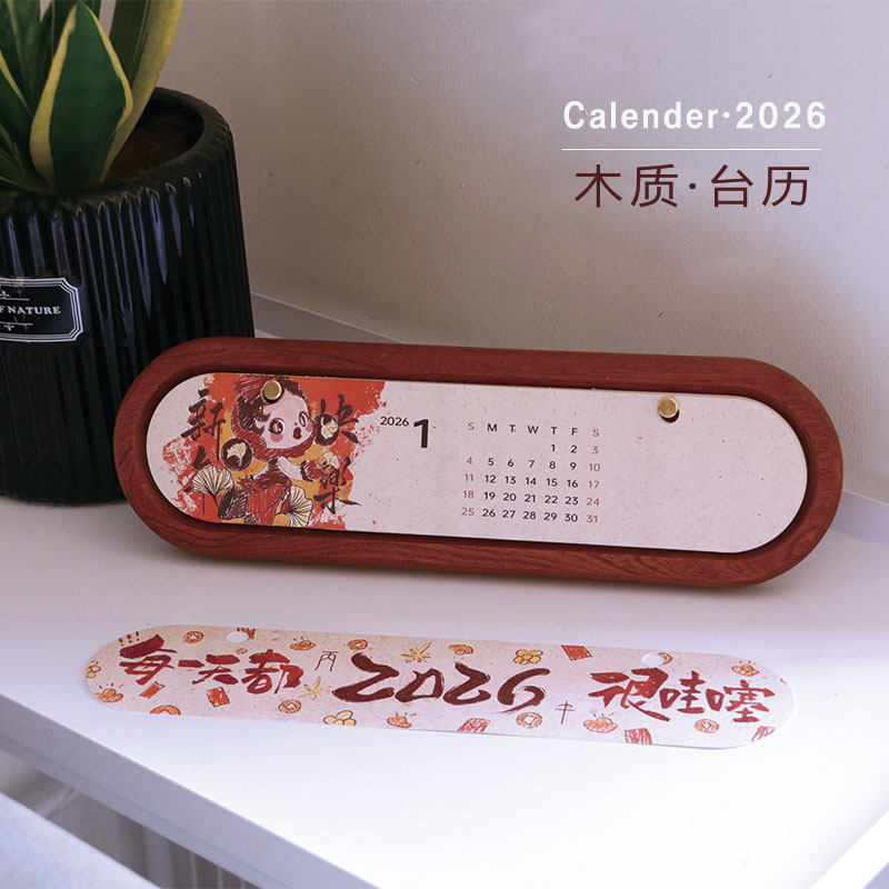 📚 木质26年台历2026新款高颜值马年日历2026年桌面台历创意摆件礼物