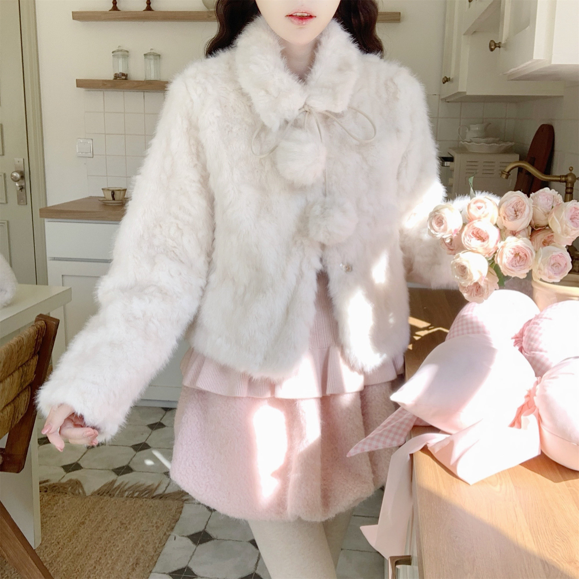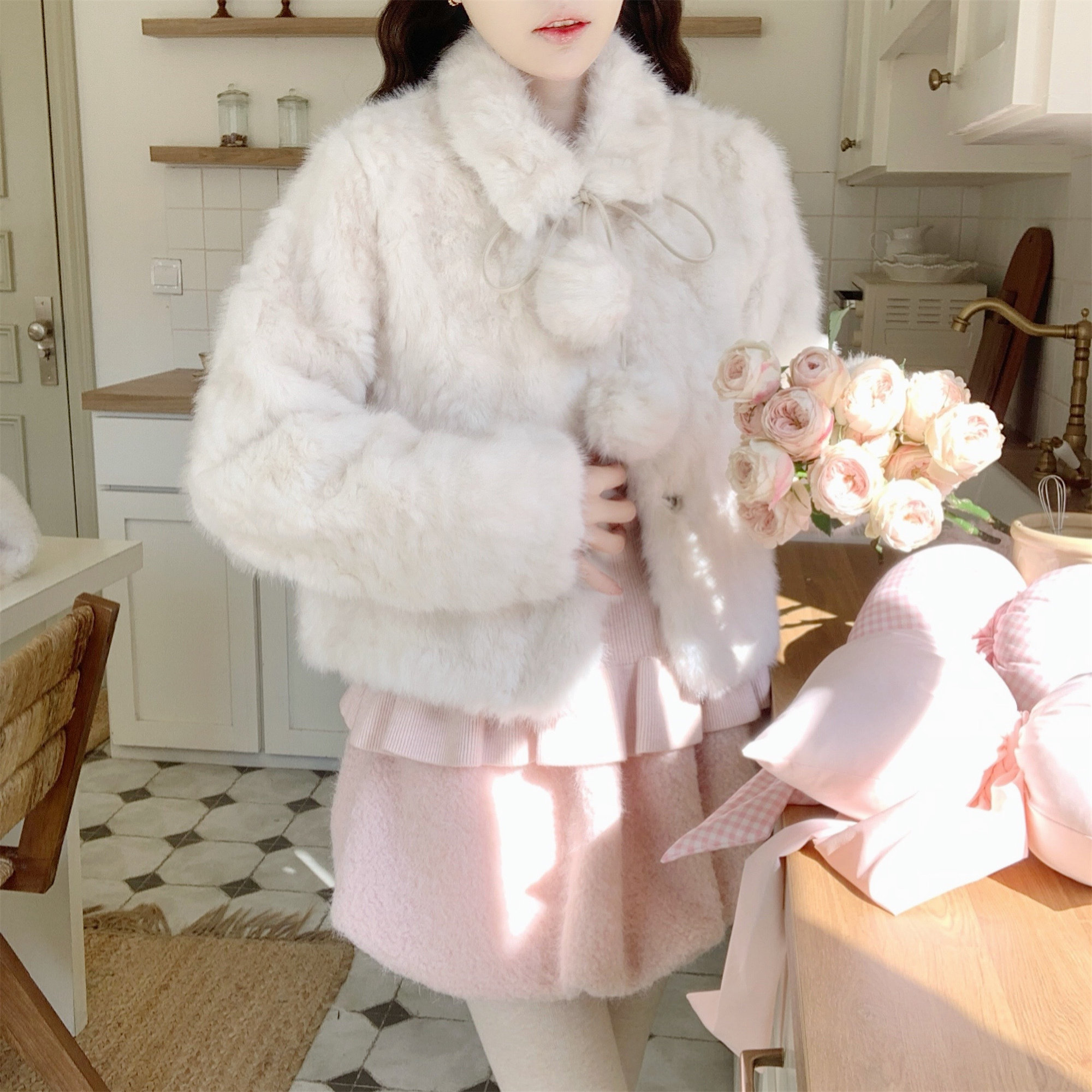 📚 【Dear YN】年度重磅 真兔毛球球皮草加厚千金感冬日显瘦短款外套