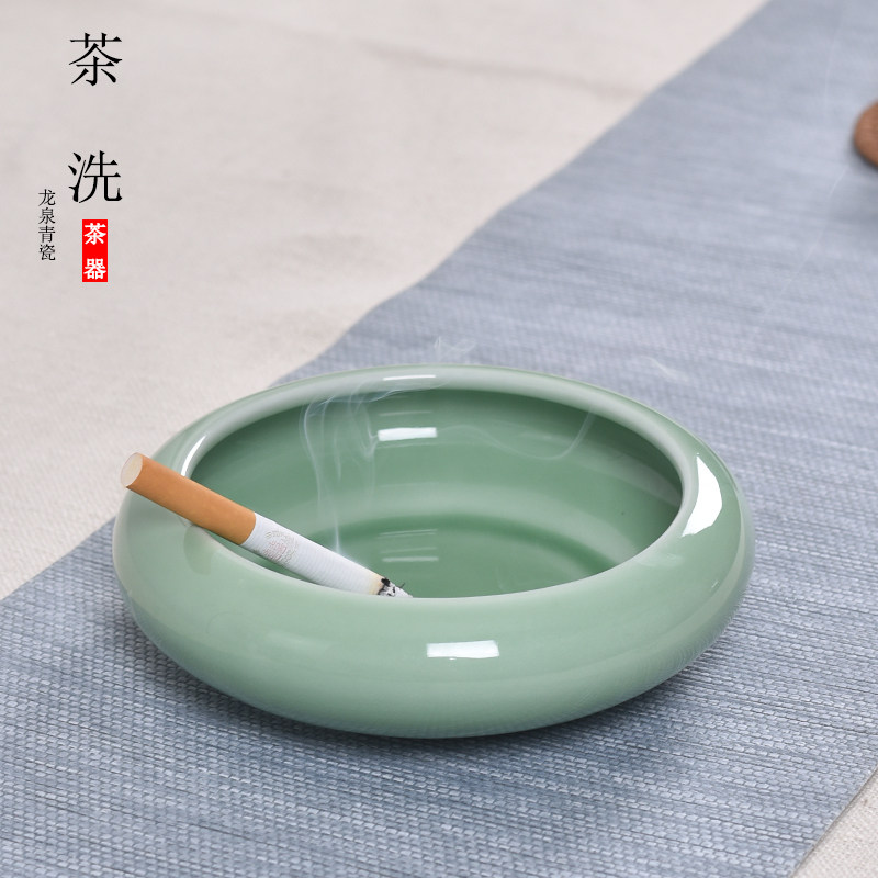 📚 青瓷烟灰缸陶瓷创意个性时尚防风大号卧室客厅水晶玻璃家用烟灰缸