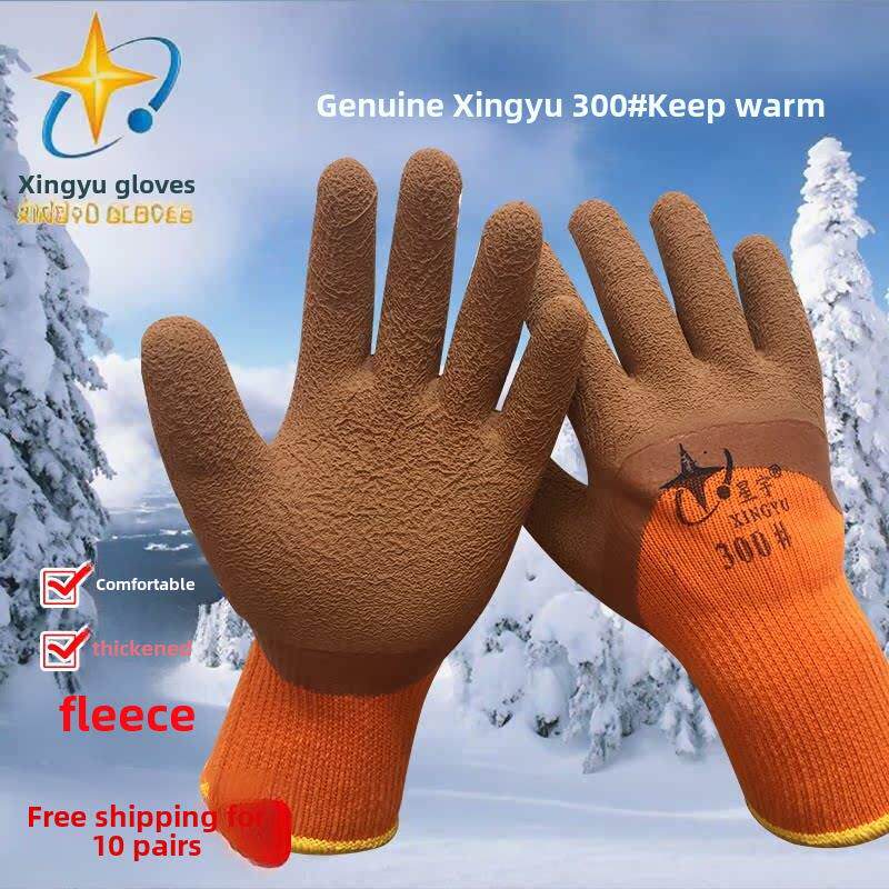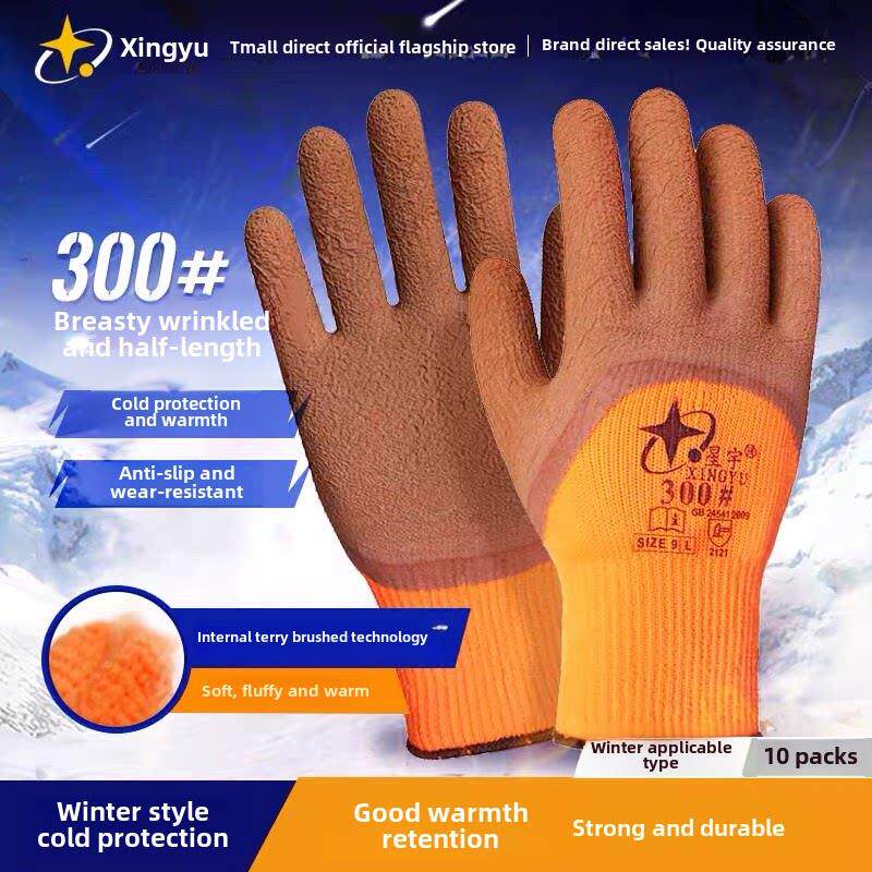 📚 正品星宇300劳保手套毛巾布衬里保暖手套浸胶耐磨工作冬季防寒加