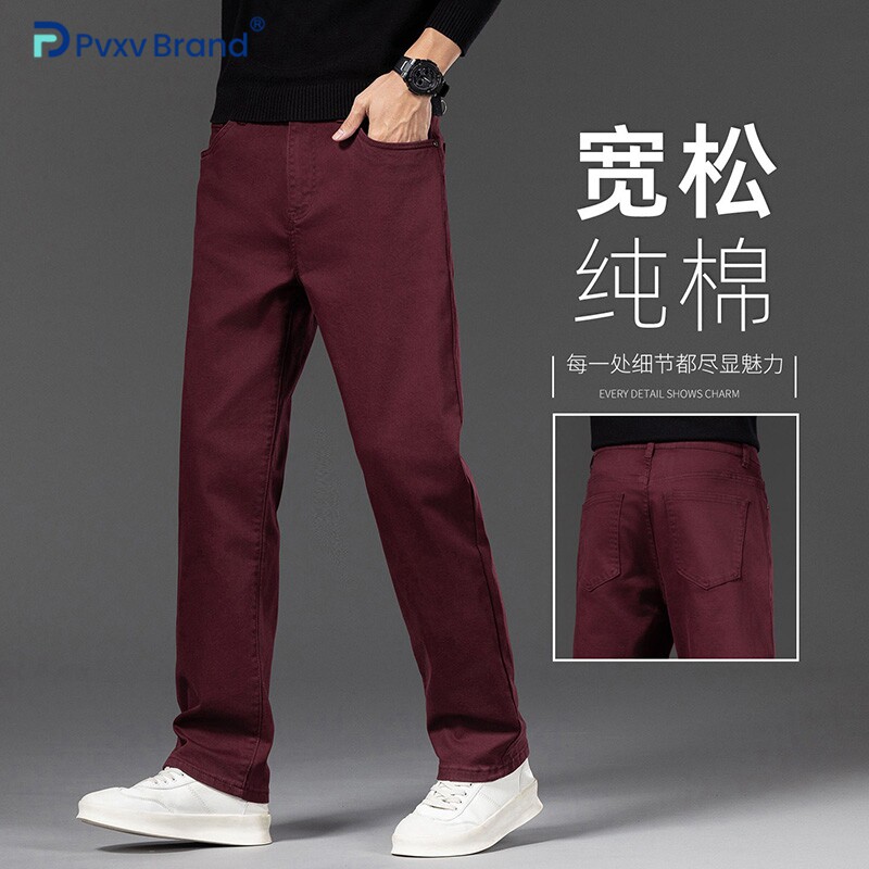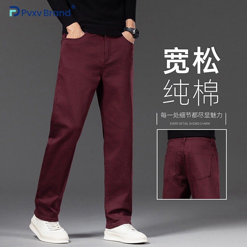 📚 新款宽松休闲裤男直筒阔腿酒日常红色百搭潮流时尚中腰裤子男款