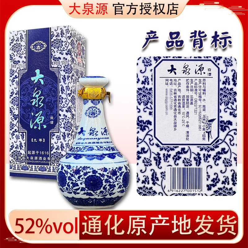📚 【2025年生产】通化大泉源白酒蓝色瓷瓶九年52度浓香型9年吉林