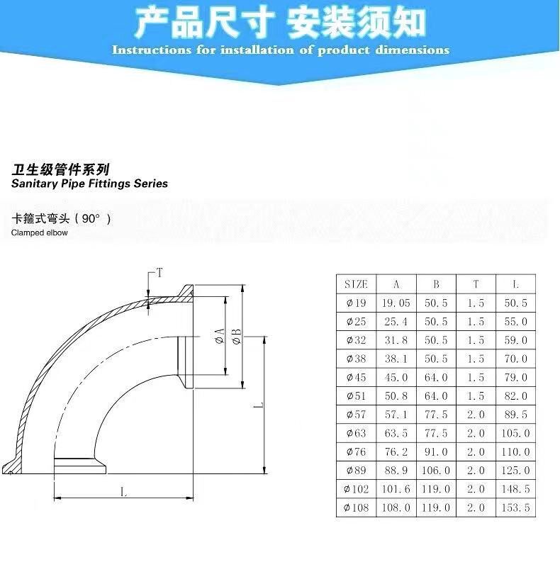 📚 304不锈钢卫生级快装弯头 卡箍式镜面内外抛光弯头 食品级卡盘弯