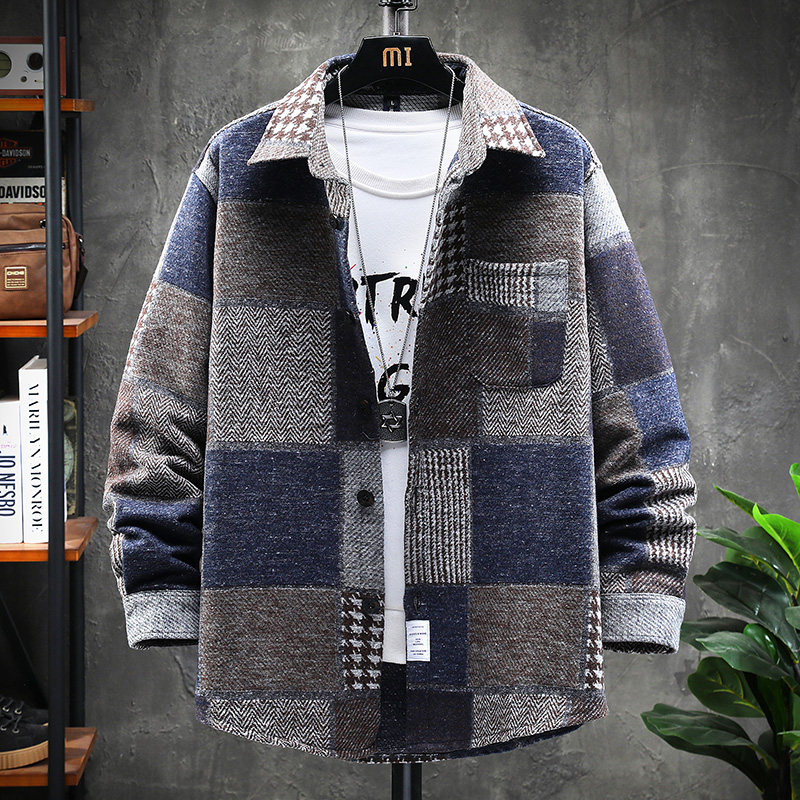 📚 秋冬季轻奢磨毛衬衫男格子宽松大码加厚潮流百搭衬衣男士休闲外套