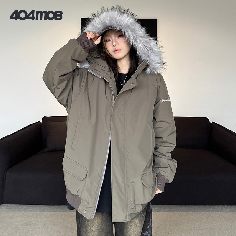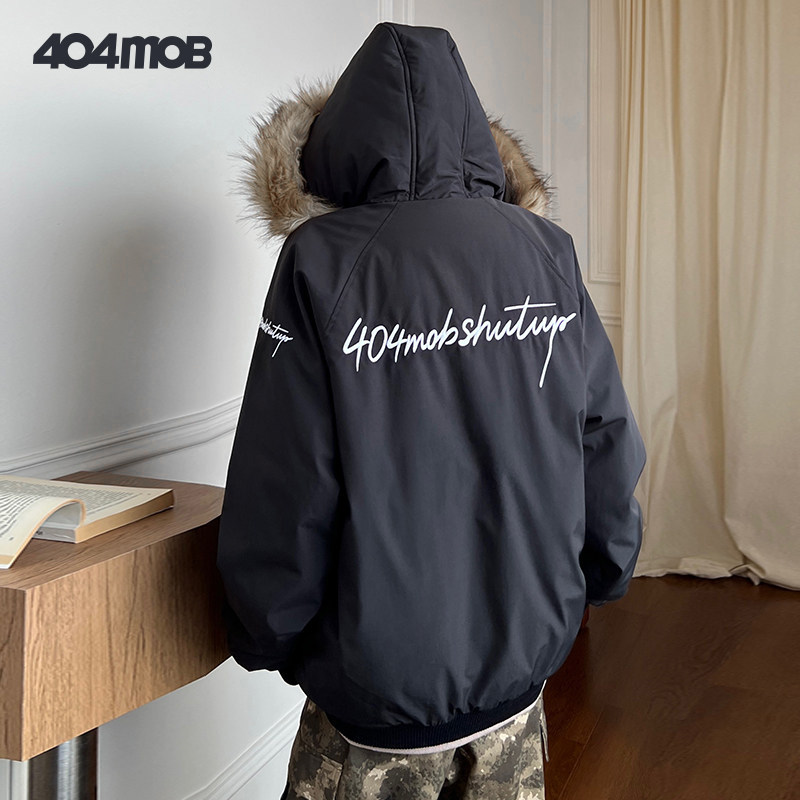 📚 404MOB美式复古可拆卸毛领派克服男冬季防水刺绣加厚保暖情侣棉服