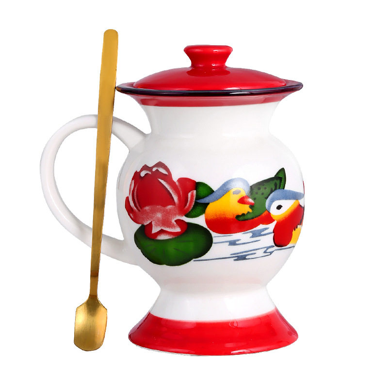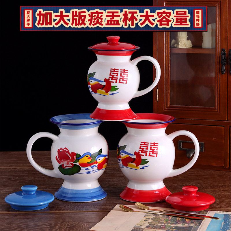 📚 痰盂水杯带勺带泡茶神器怀旧老式陶瓷杯子恶搞怪生日礼物茶壶缸子