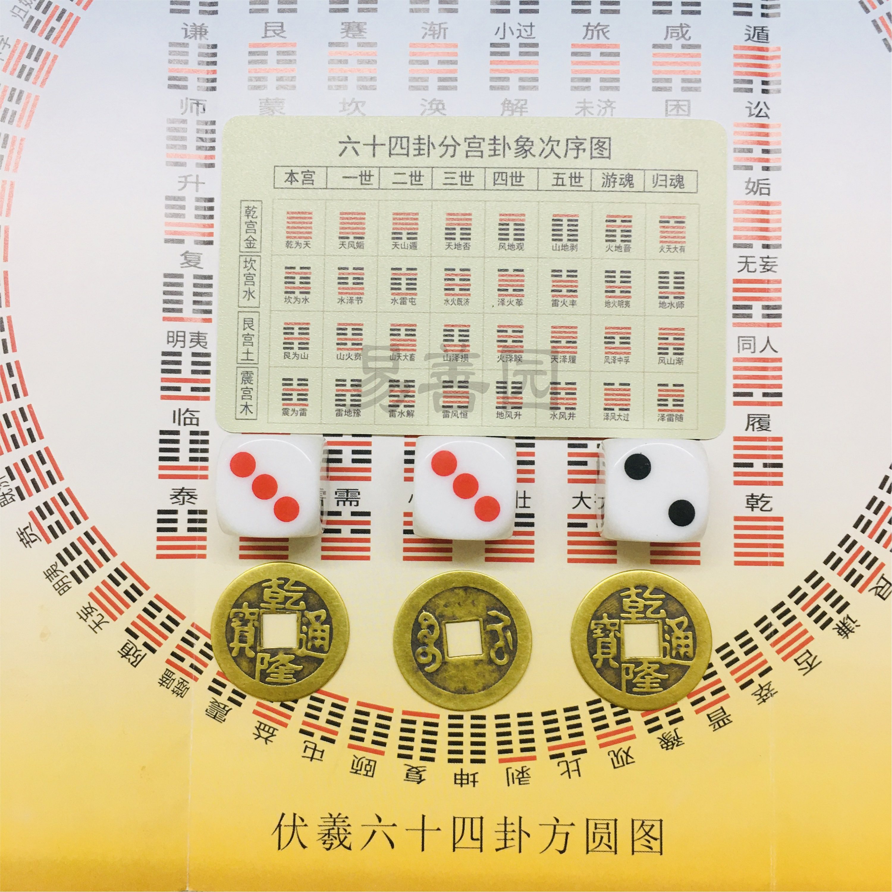 📚 国学易经教具六十四卦易骰64卦三两点铜钱方圆图分宫次序图小卡片