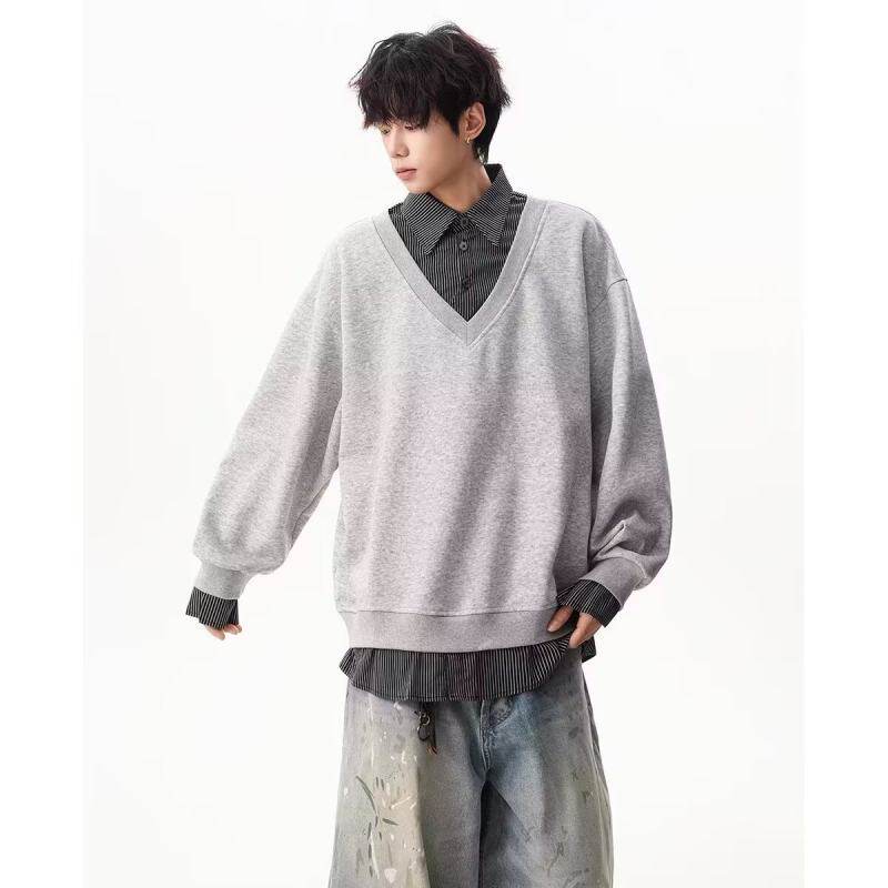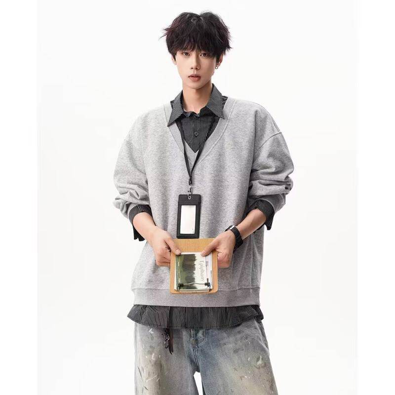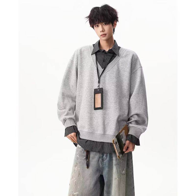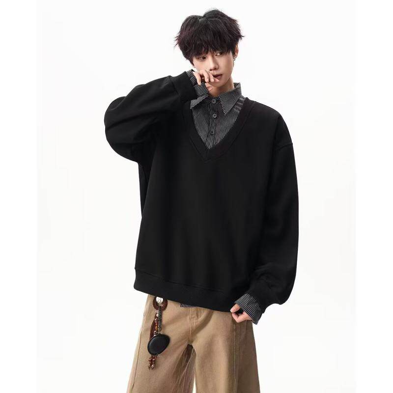 📚 「设计师品牌」春季新款假两件拼接长袖卫衣Polo领上衣