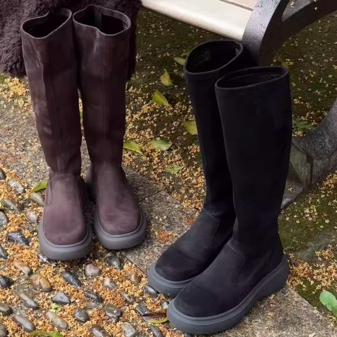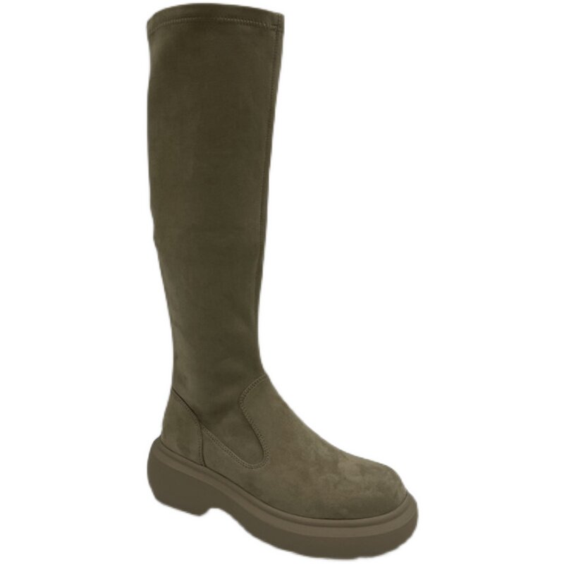📚 诗姗姗靴子女2025年秋冬款绒面长靴显瘦弹力高筒靴圆头厚底瘦瘦靴