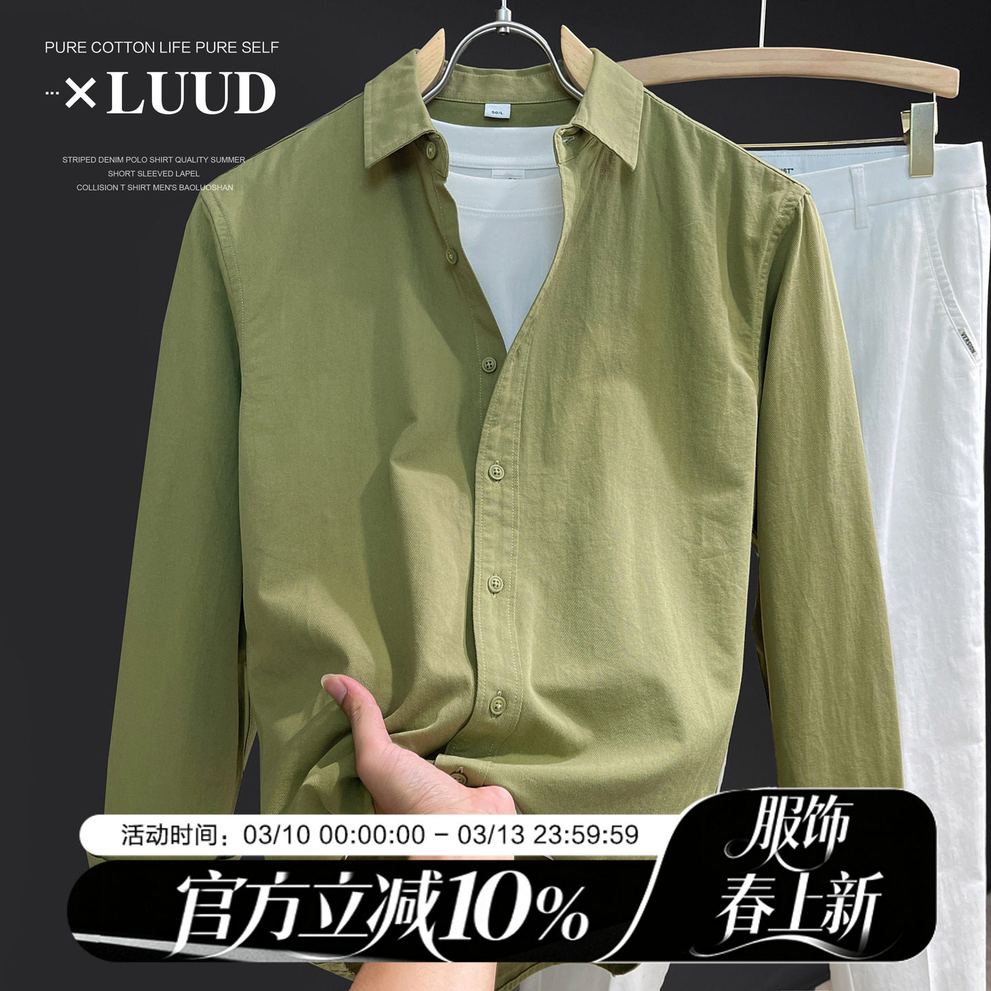 📚 LUUD 温柔男友风文艺衬衣百搭潮流纯色翻领上衣韩版纯棉外搭衬衫