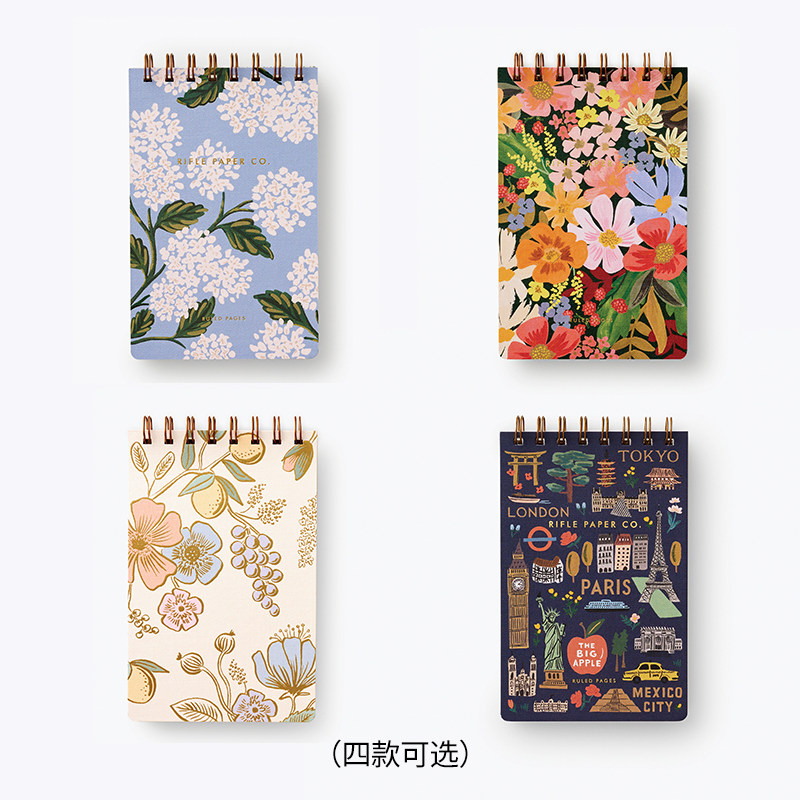 📚 美国Rifle Paper Co.活页金属线圈备忘录横间笔记本复古烫金插画