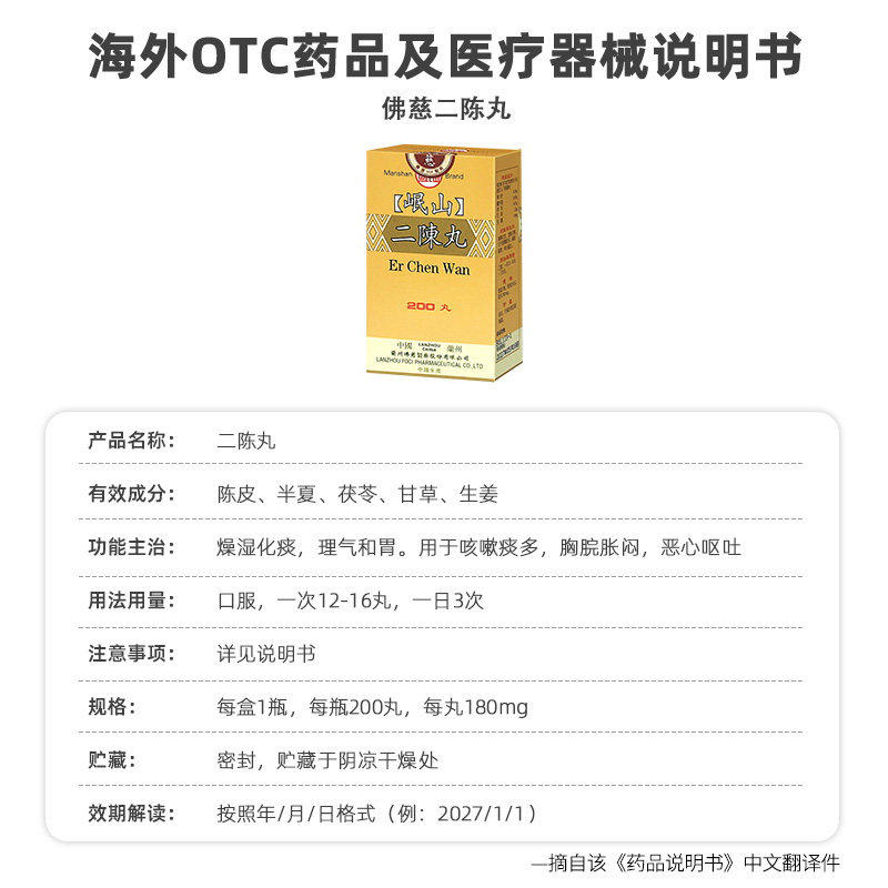 📚 香港佛慈岷山二陈丸燥湿化痰理气和胃正品止咳200丸二陈汤平胃丸