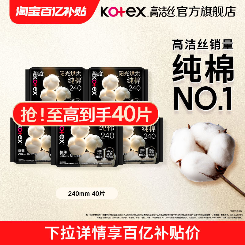 📚 【百亿补贴】高洁丝阳光烘烘纯棉卫生巾日用姨妈巾240mm旗舰店