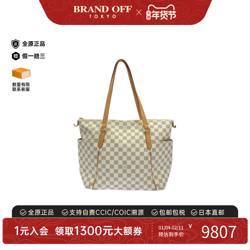 📚 中古LV路易威登女包A级95新 Azur Totally白棋盘格单肩包正品时尚