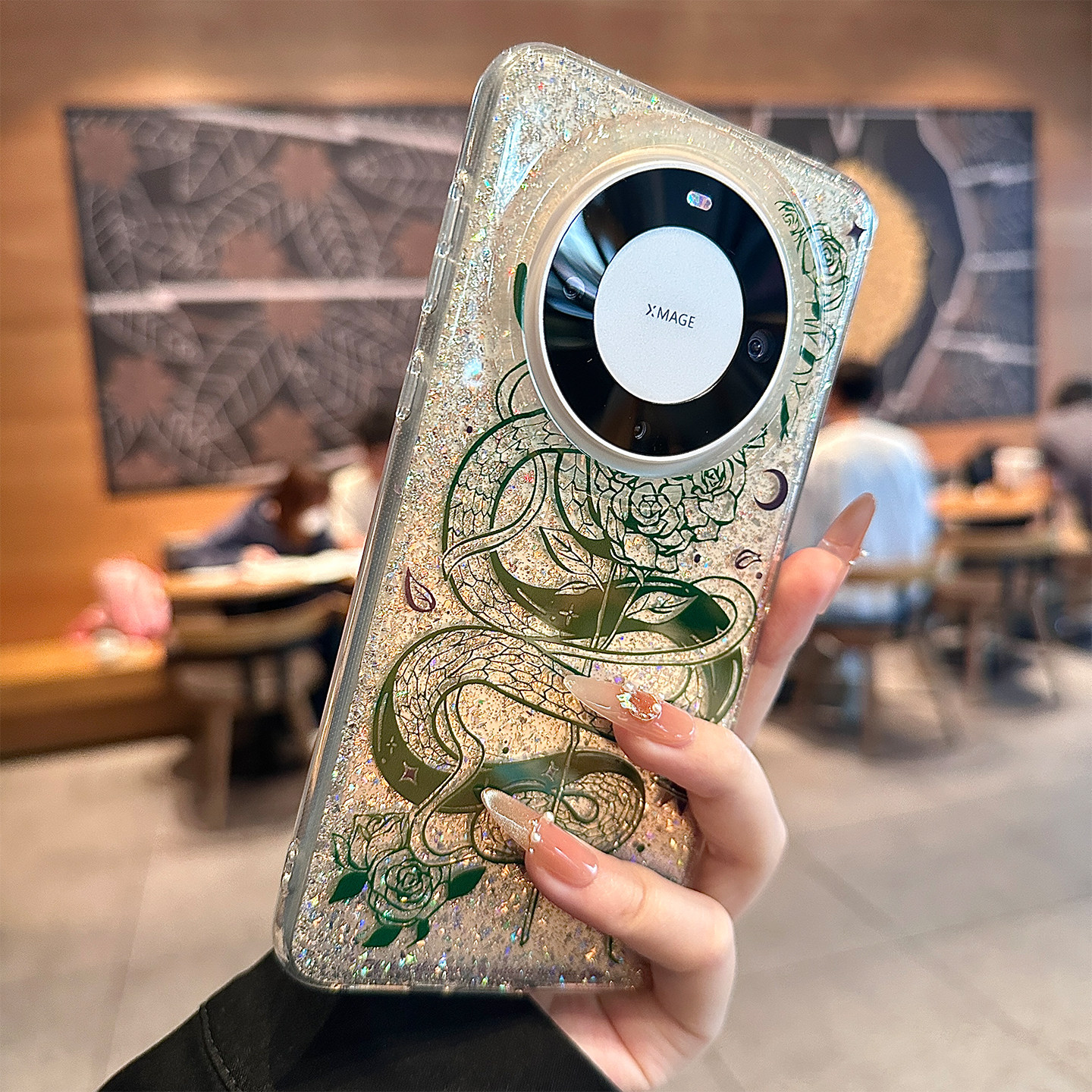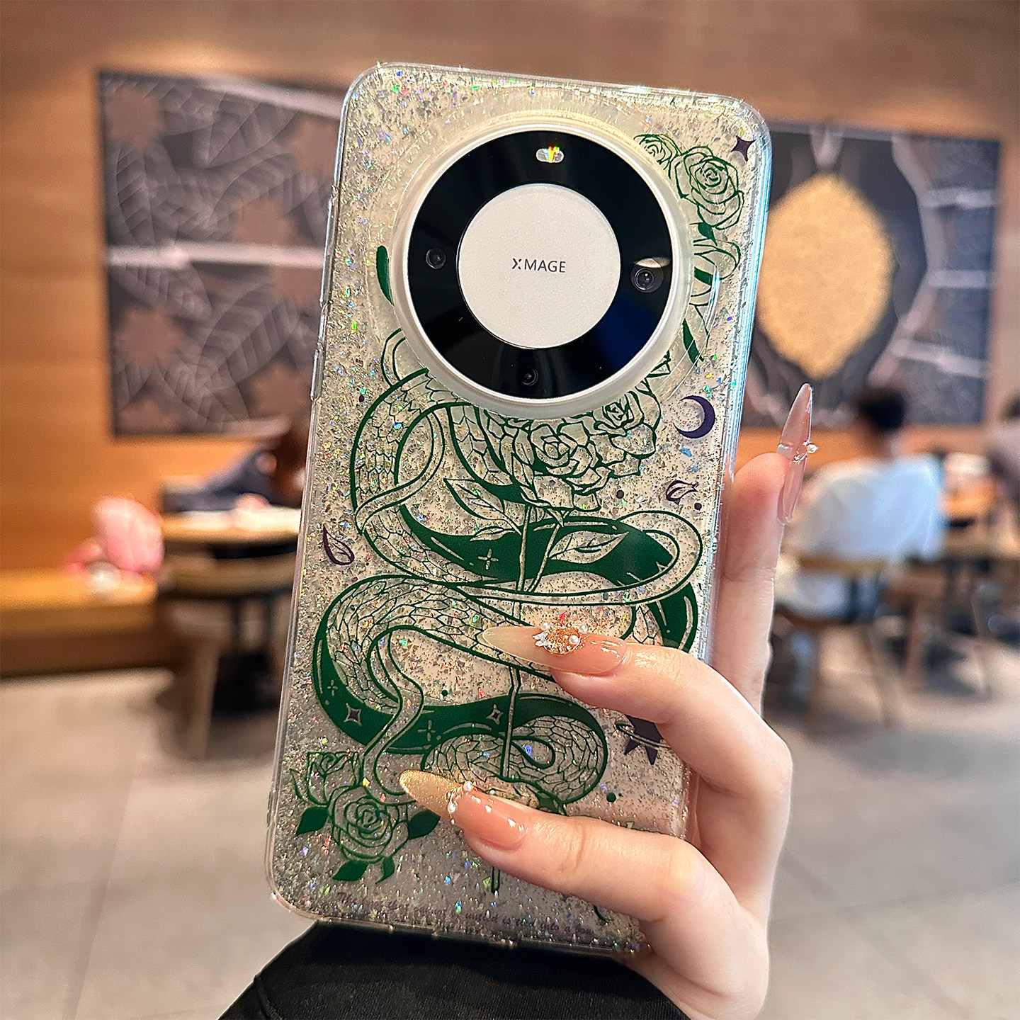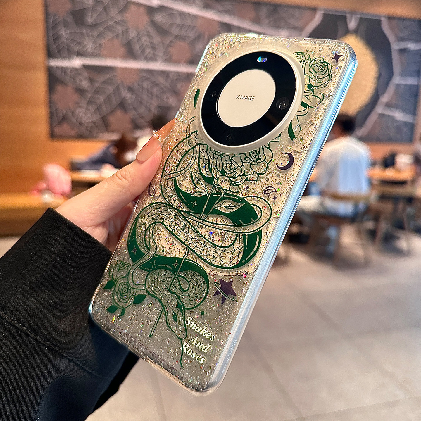 📚 酷图适用华为mate60pro+手机壳新款pura70pro+高级个性闪粉玫瑰青蛇mate60pro创意苹果16Pro防摔女款潮15