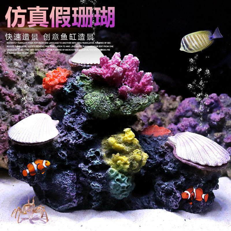 📚 仿真假珊瑚礁石造景树脂贝壳鱼缸装饰水族箱摆件海水缸布景地中海