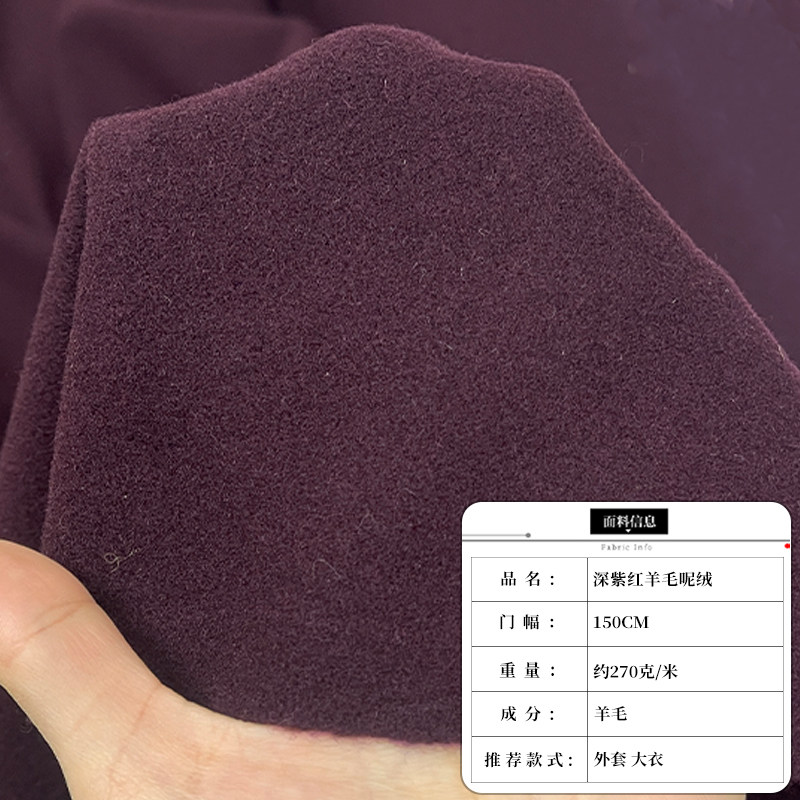 📚 七彩之韵深紫红软糯羊毛呢绒秋冬季布料女士大衣外套女装服装面料