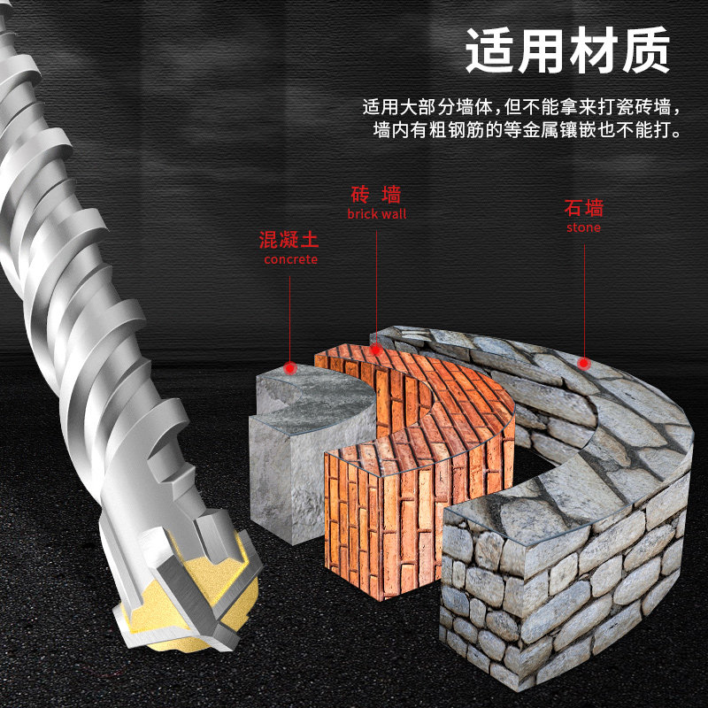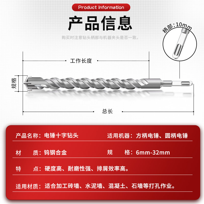 📚 非标十字电锤钻冲击钻四刃钻头6.5 8.5 10.5 12.5 12.7 14.5 16.5