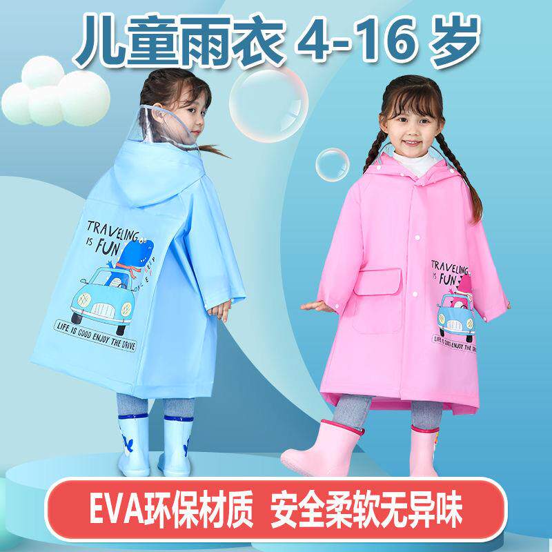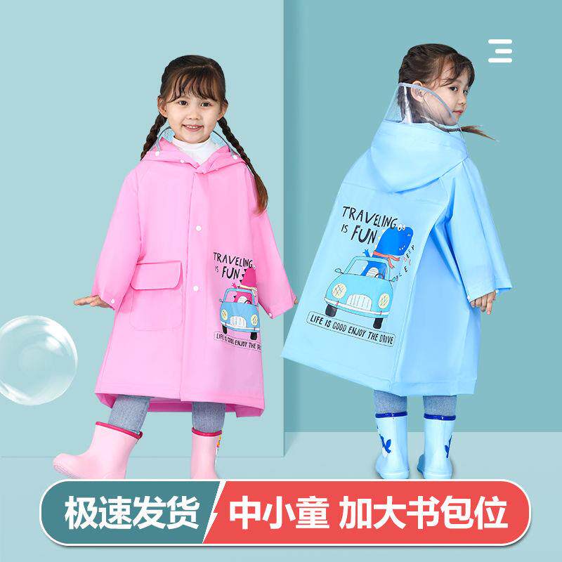 📚 儿童雨衣卡通可爱男女童上学出行雨衣带书包位防水雨衣大帽檐雨披