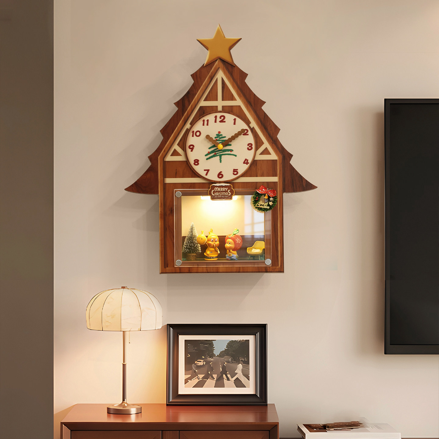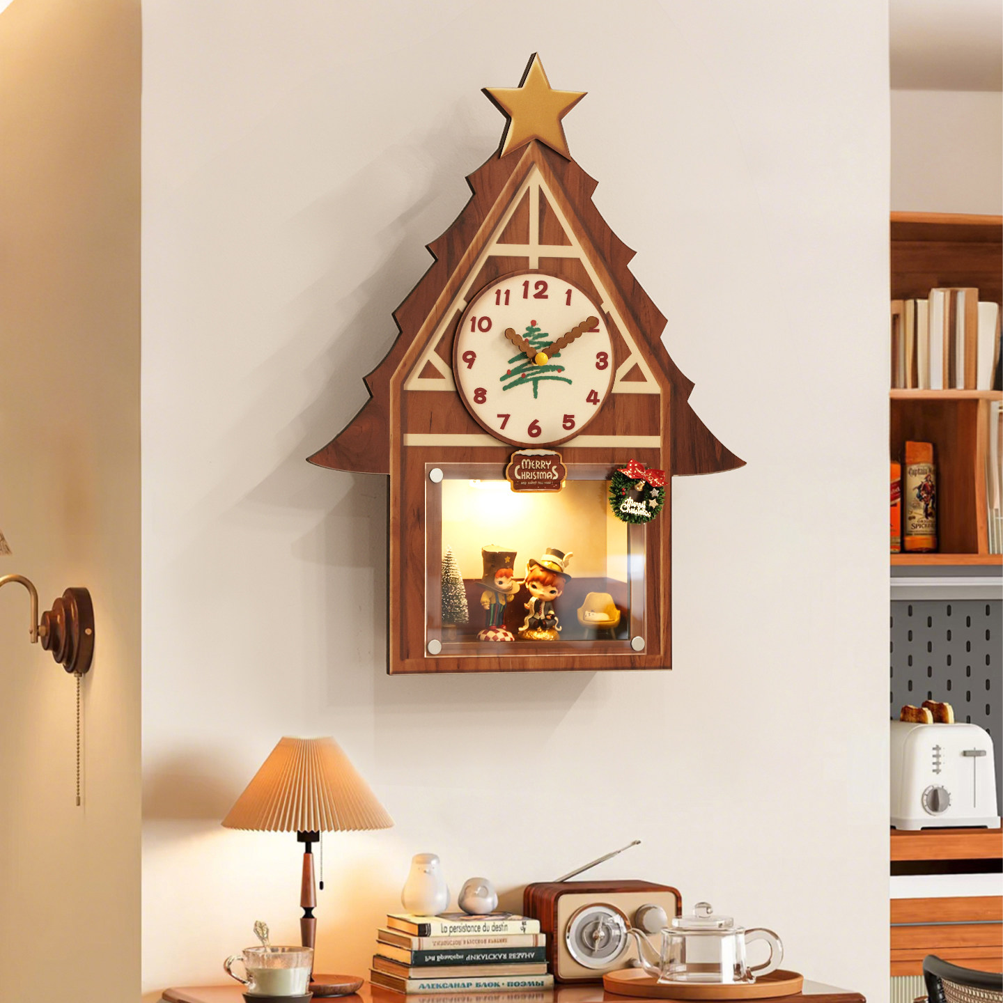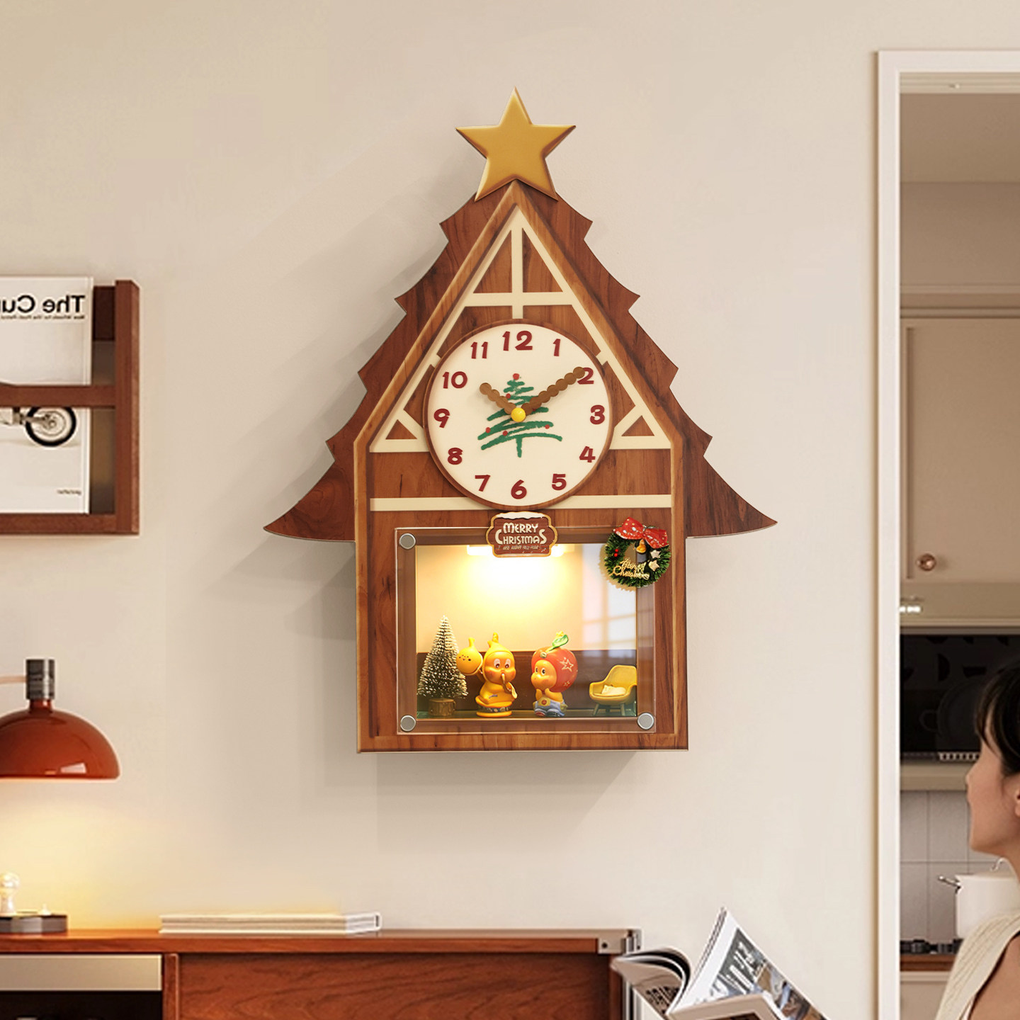 📚 盲盒收纳展示架客厅挂钟表手办防尘展示柜创意圣诞树装饰挂墙时钟