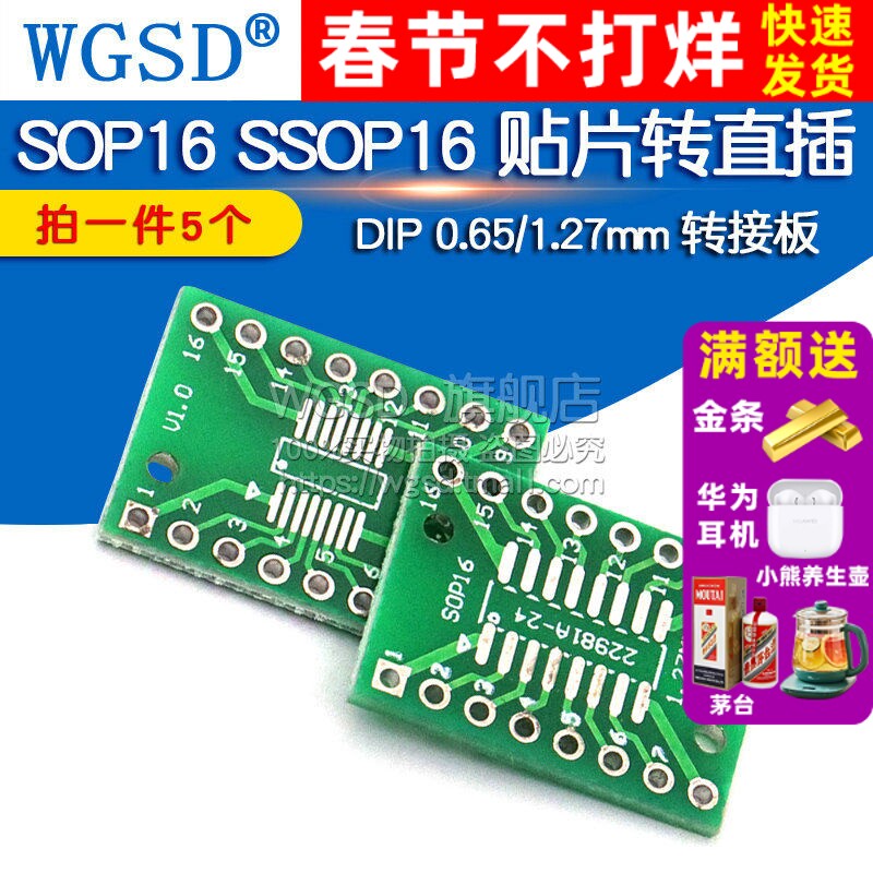 📚 SOP16 SSOP16 TSSOP16 贴片转直插转接板 DIP 0.65/1.27mm 5个)