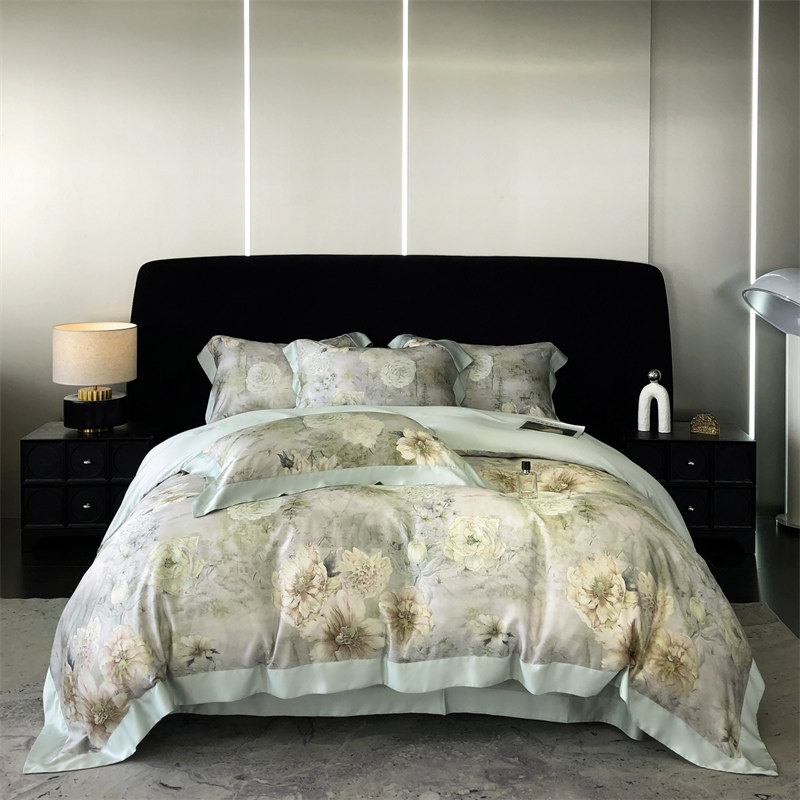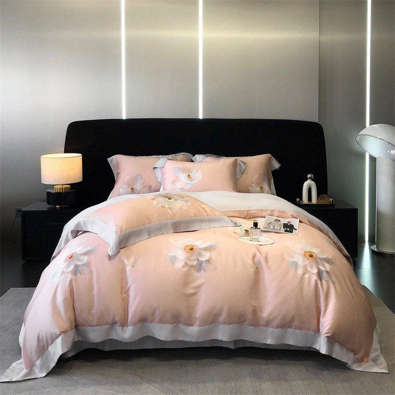 📚 高端60支纯兰玉精莱赛尔天丝四件套轻奢印花拼角床单冰丝床上用品