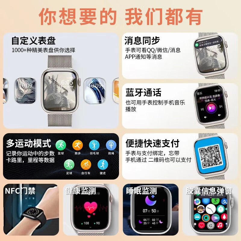 📚 华强北watchS9手表新款S10顶配测心率血压运动手环iwatch适用苹果