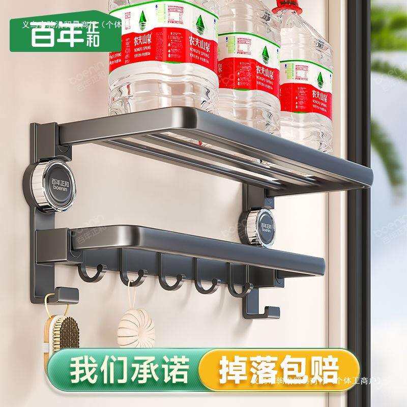 📚 百年正和卫生间浴巾架折叠毛巾架吸盘浴室厕所免打孔置物架子一体