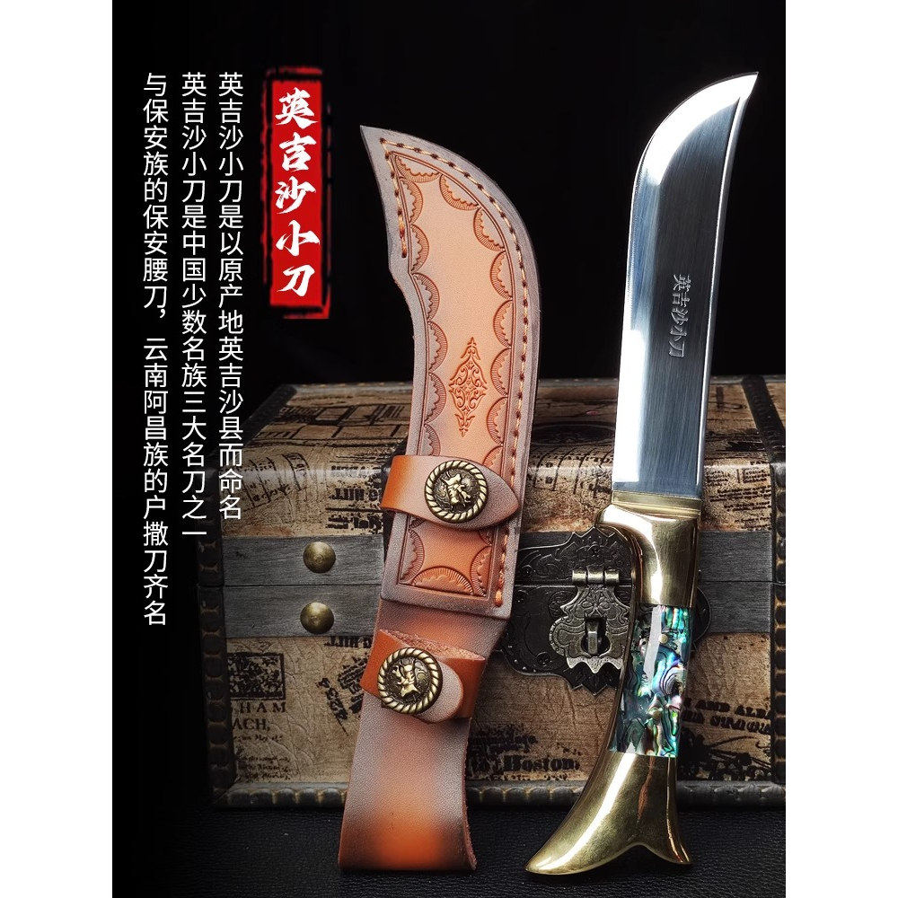 📚 【新疆包邮】英吉沙手工锻打钢黄铜手柄锋利手把肉户外随身水果刀