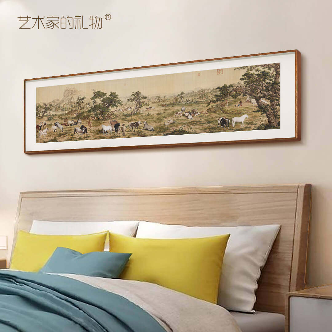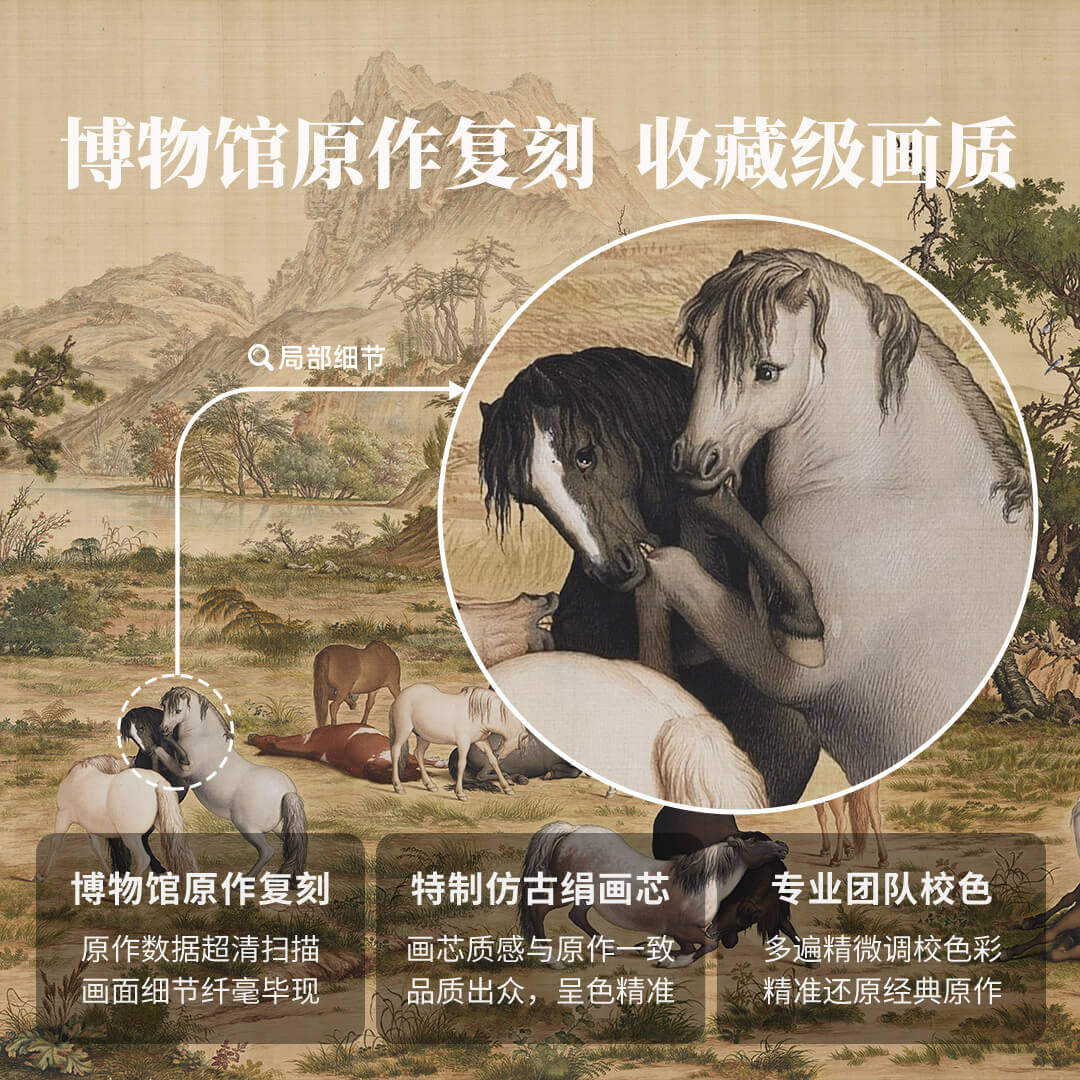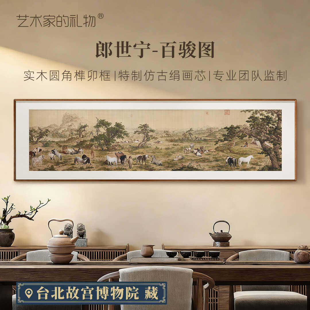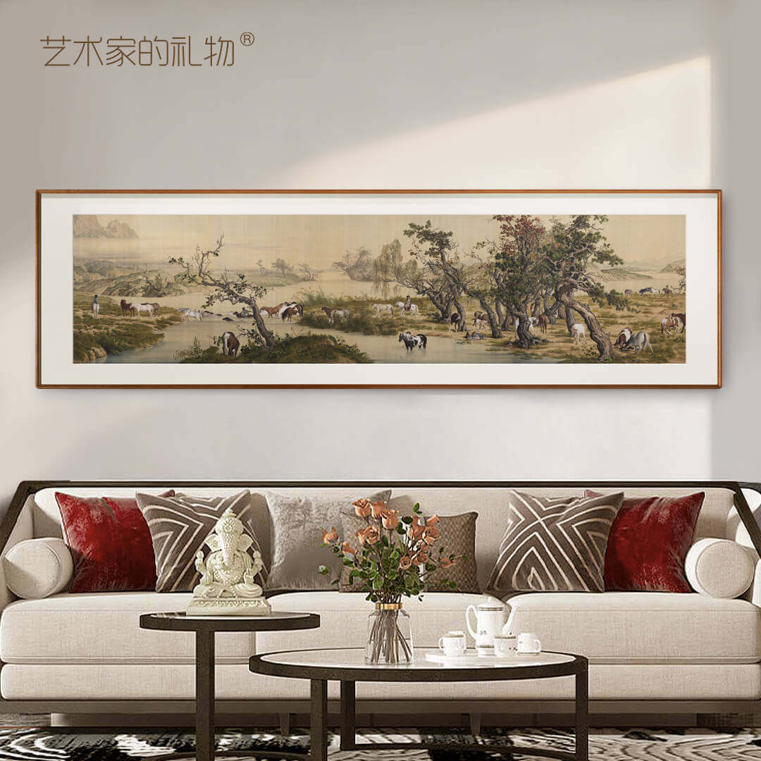 📚 郎世宁《百骏图》新中式客厅装饰画办公室背景墙挂画国风大气国画