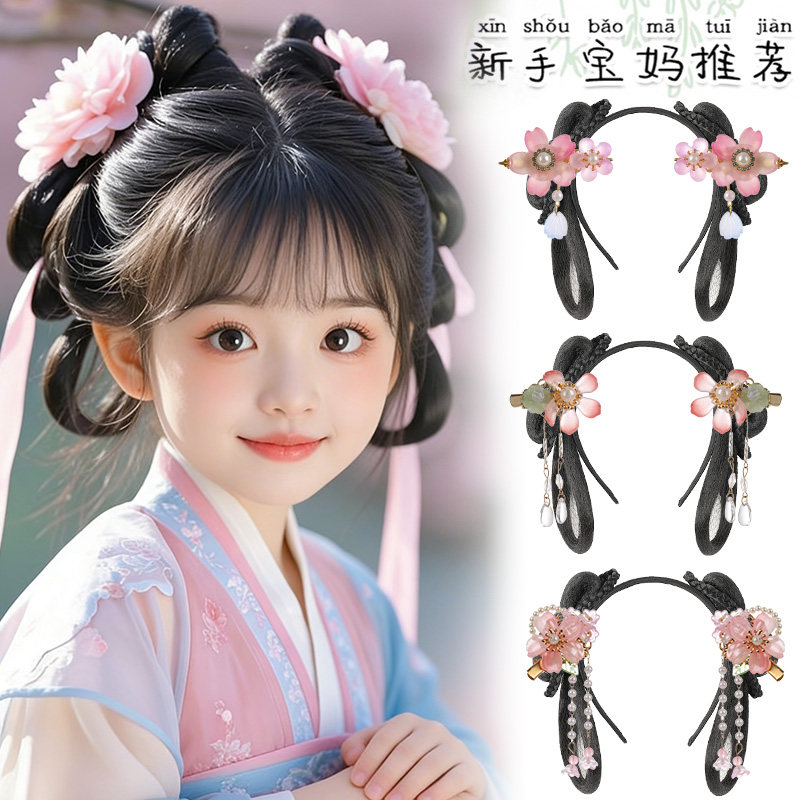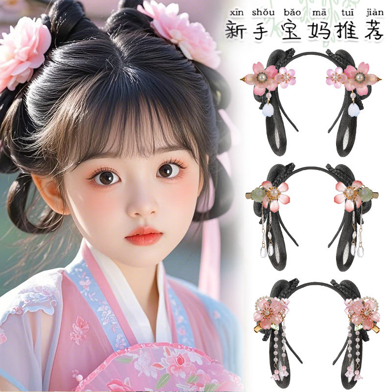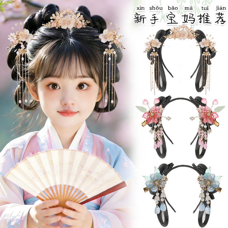 📚 儿童汉服头饰古风一体式发箍假发古装女童发饰盘发垫发包发髻造型