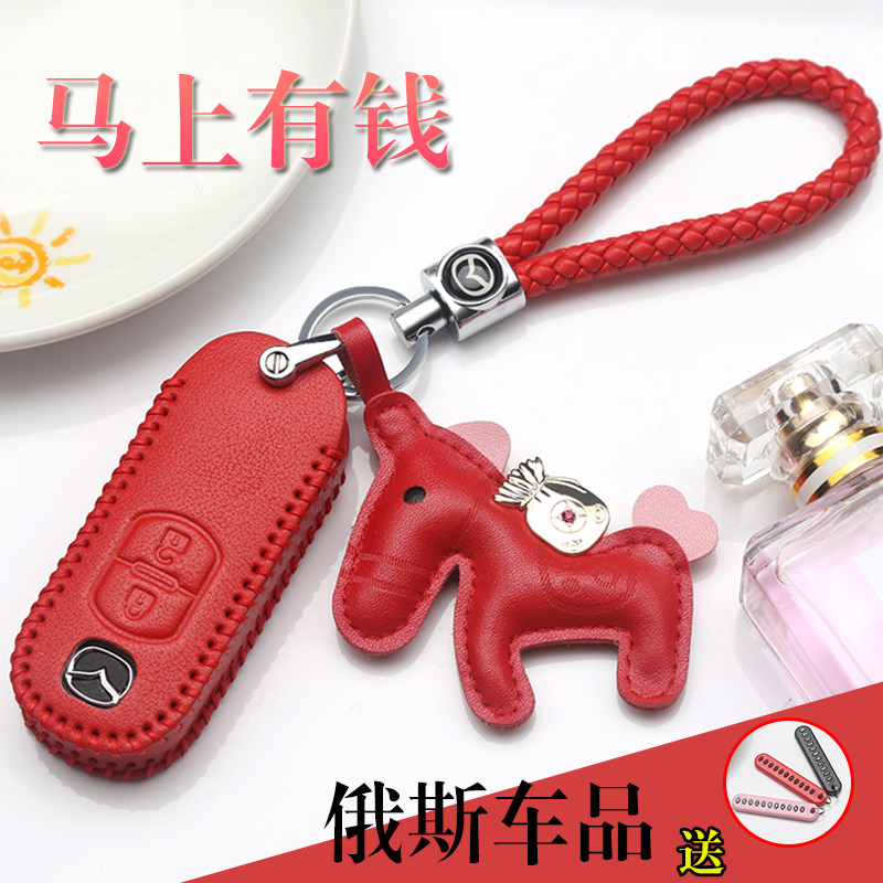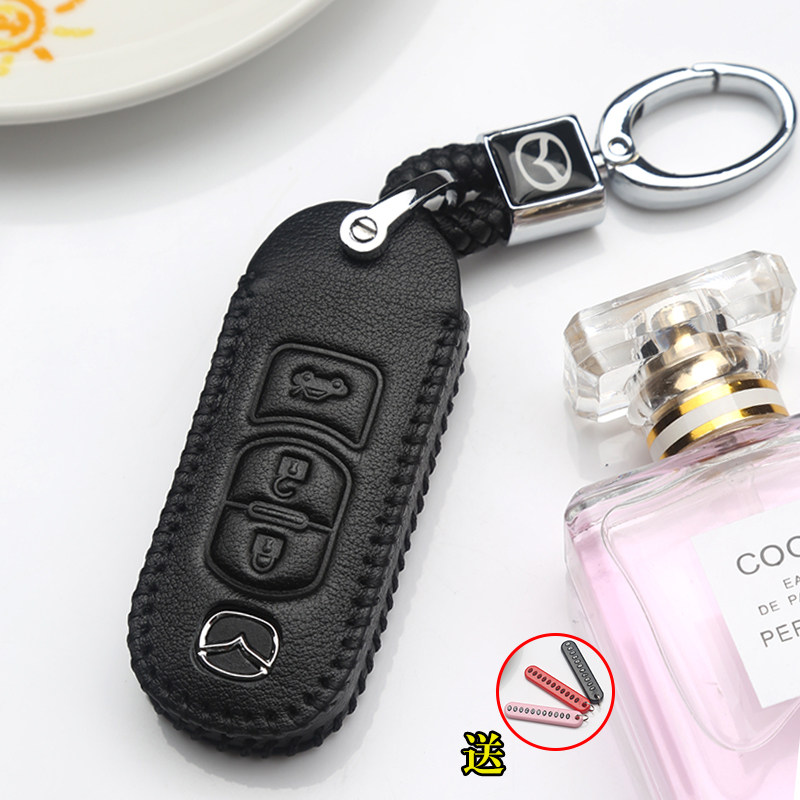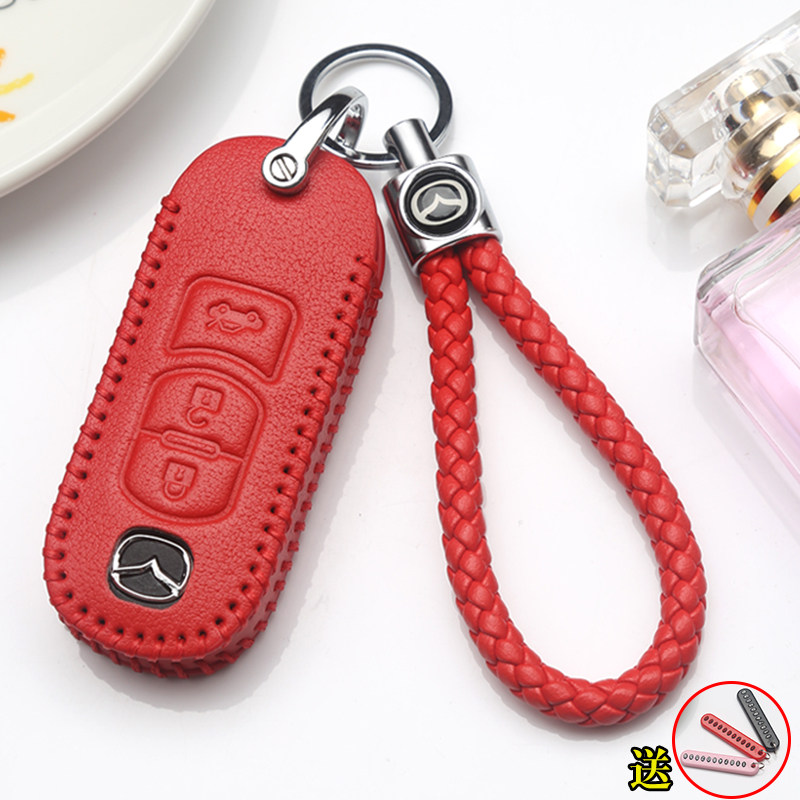 📚 适用于马自达昂克赛拉钥匙套CX5CX4阿特兹马6马3汽车真皮钥匙包扣