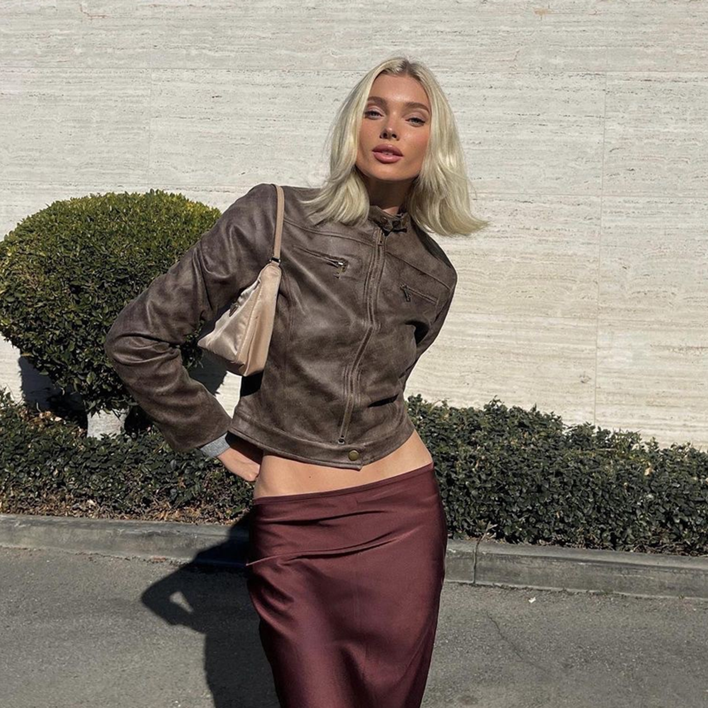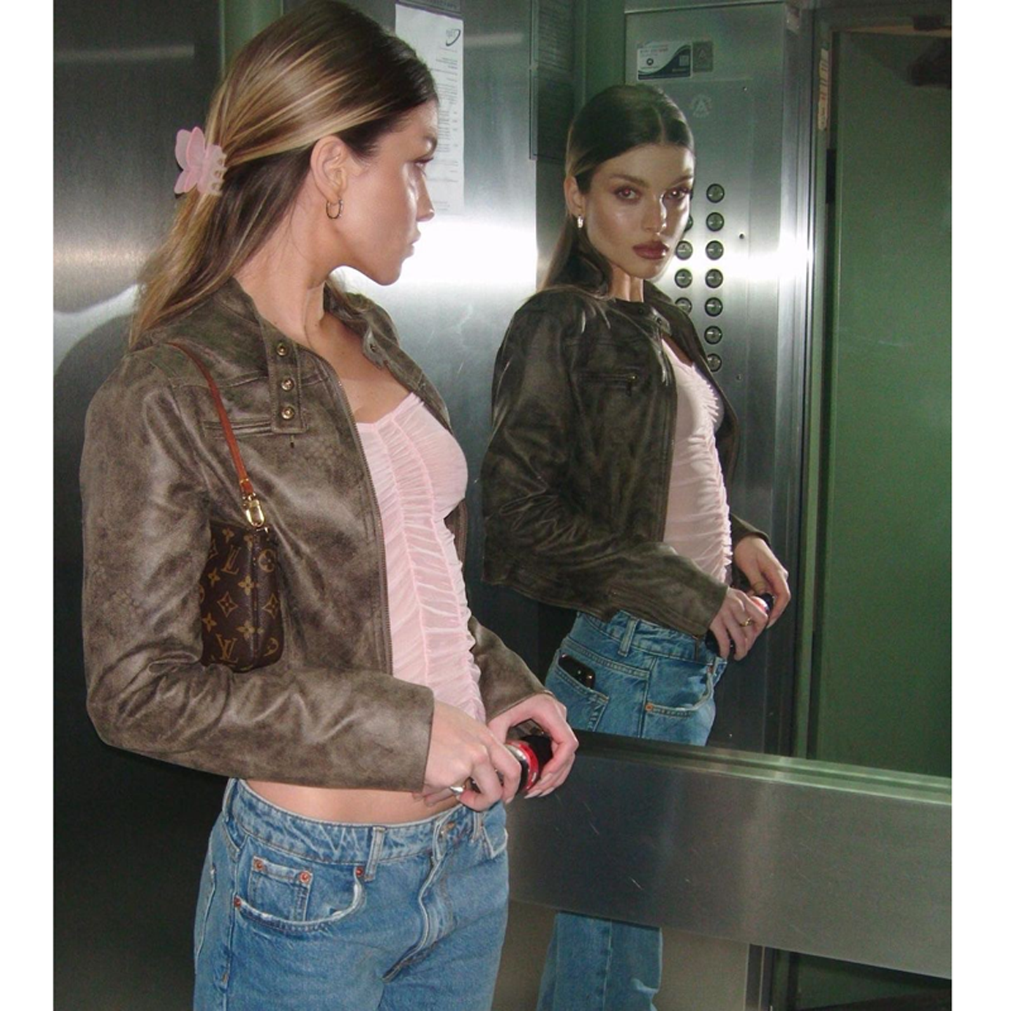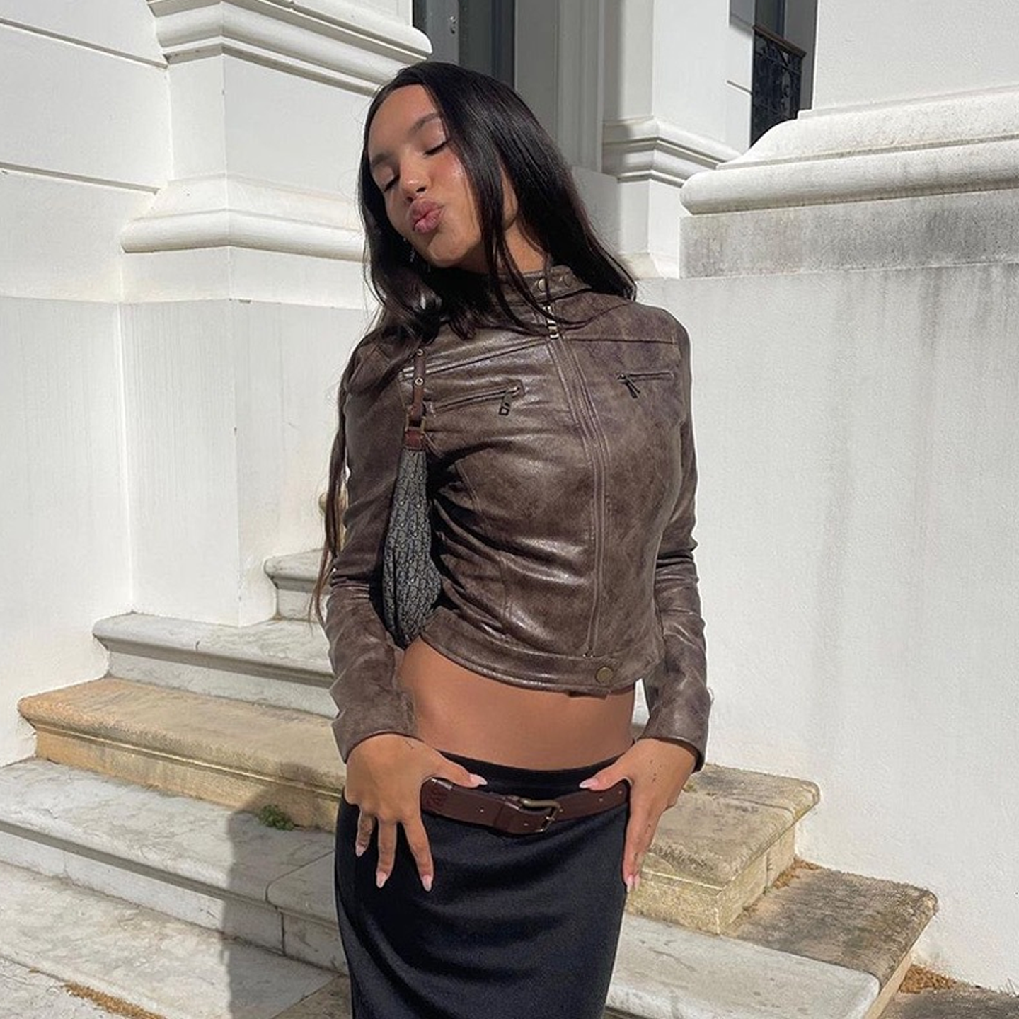 📚 lioness皮衣美德拉棕色做旧复古机车仿麂皮绒修身夹克立领短外套