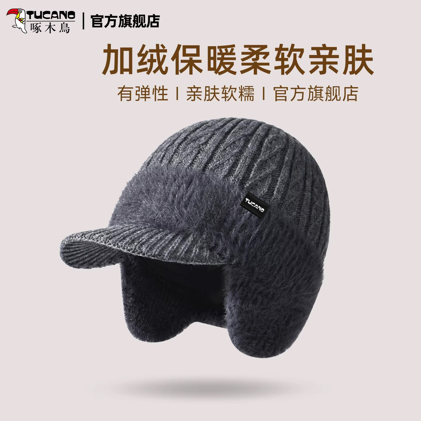 📚 啄木鸟老人帽子男士冬季爷爷保暖中老年人爸爸加绒护耳针织毛线帽