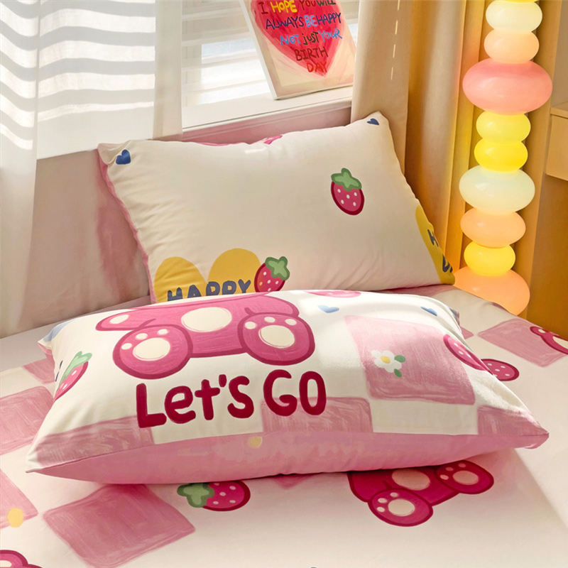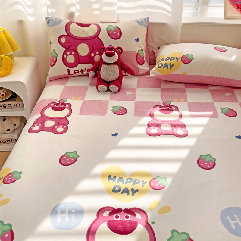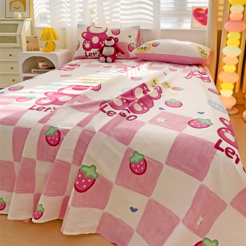 📚 草莓熊儿童床单单件纯棉100全棉女孩可爱宿舍粉色被单单人三件套