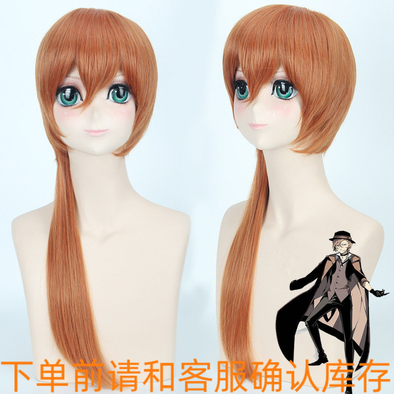 📚 文豪野犬 中原中也 金棕色橙色桔色短发+长发拖尾假毛cosplay假发