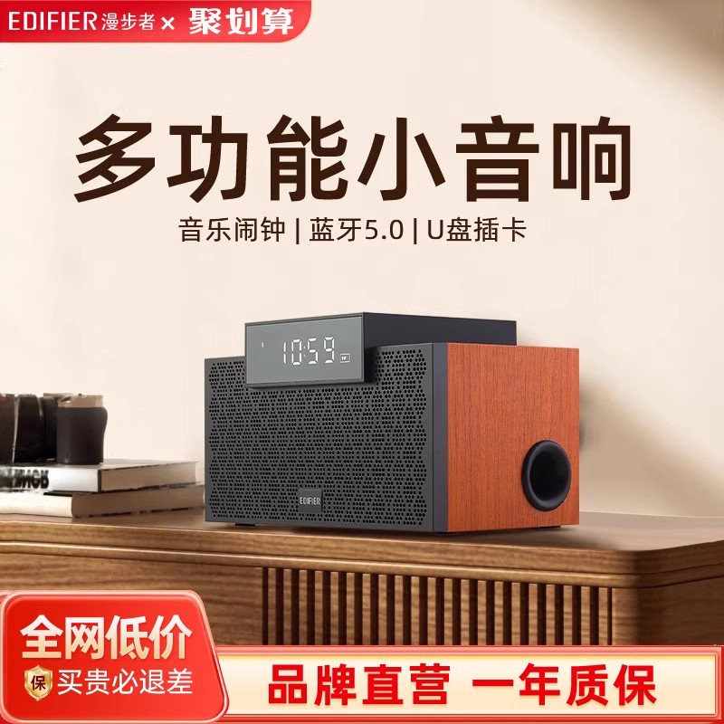 📚 漫步者M260无线蓝牙音箱智能闹钟家用木质小型高音质重低音迷你