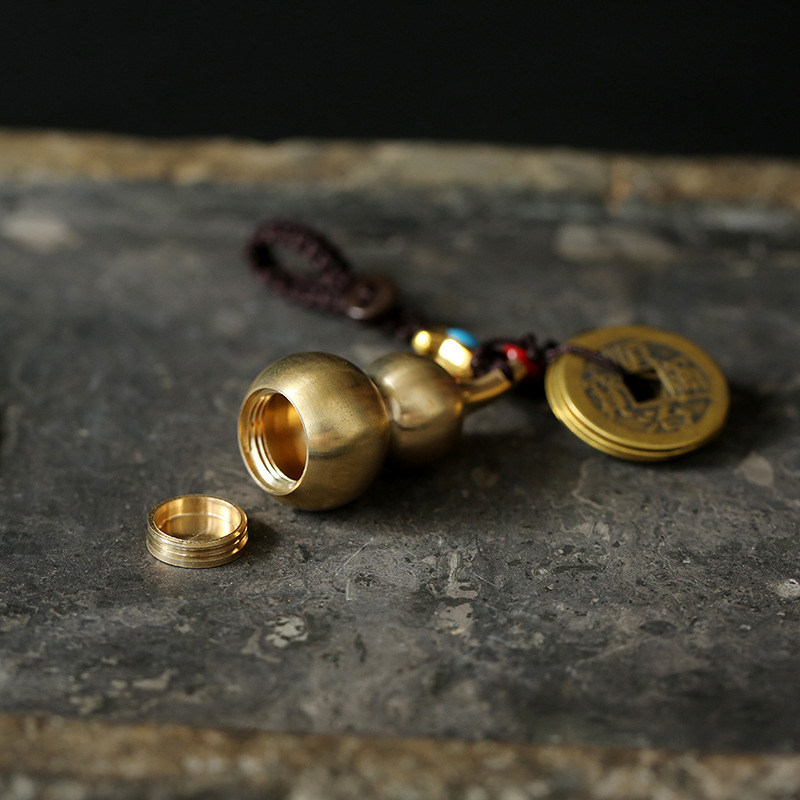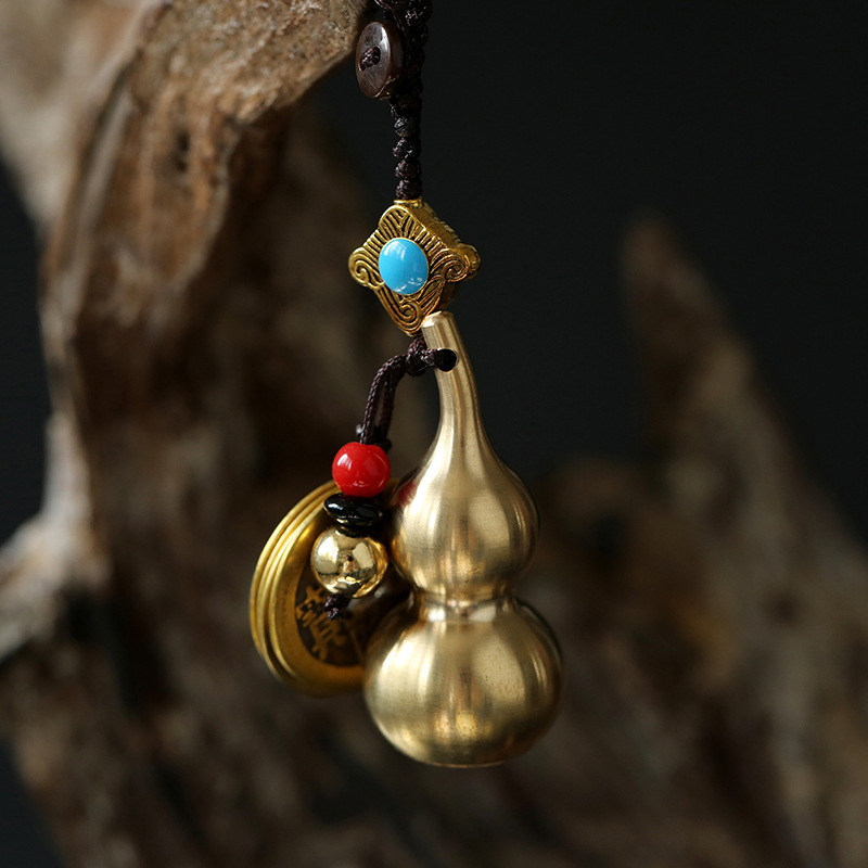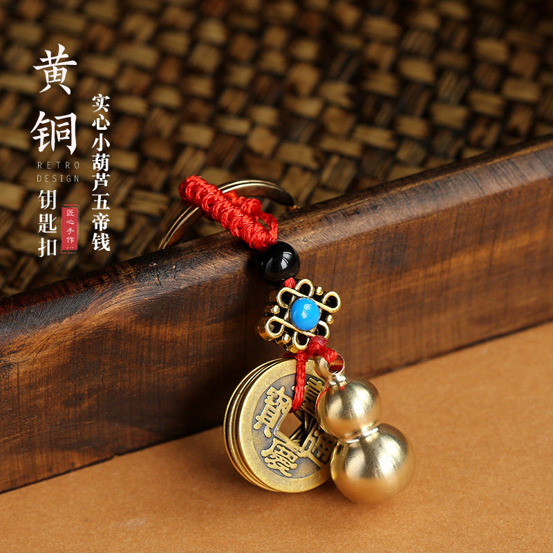 📚 杭州灵隐官方黄铜平安小挂件汽车黄铜钥匙扣招财葫芦五帝钱小铜器