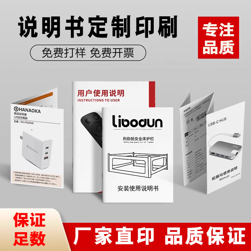 📚 产品使用说明书印刷黑白彩色目录合同协议本A4员工手册三折页定制
