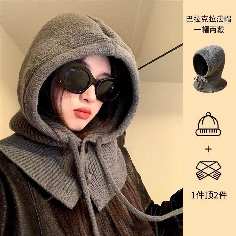 📚 韩系百搭冬季巴拉克拉法帽子针织套头帽保暖连帽围巾帽Beanie帽子