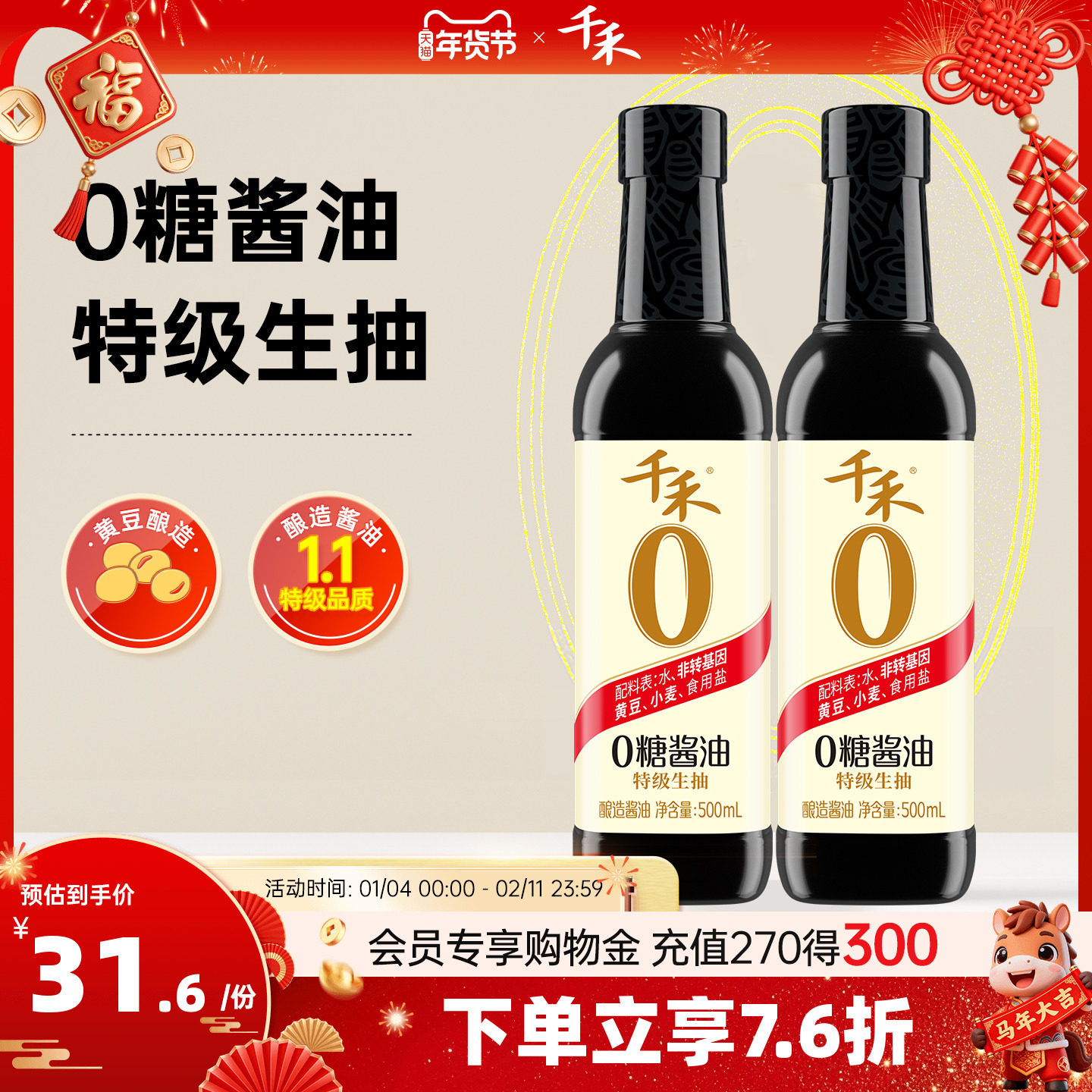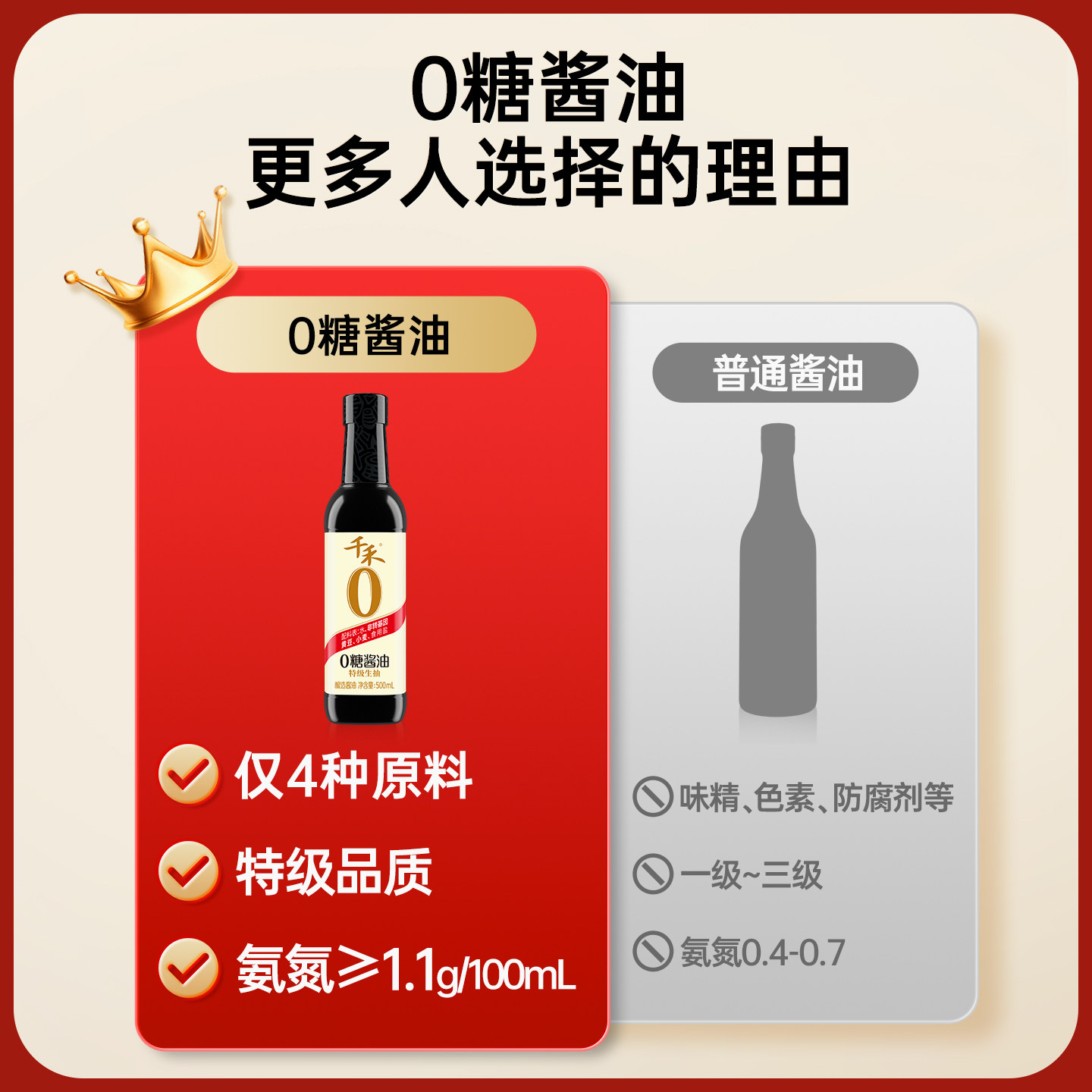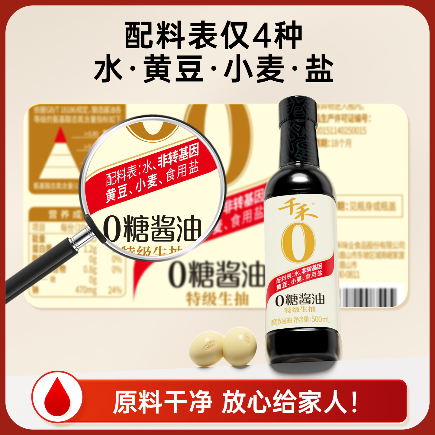 📚 千禾0糖0添加特级酱油500ml生抽零添加黄豆小瓶调味品官方旗舰店