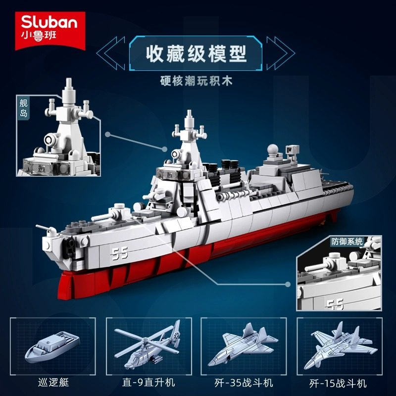 📚 小鲁班055大驱大连舰驱逐舰中国产舰艇积木军舰模型积木男孩玩具