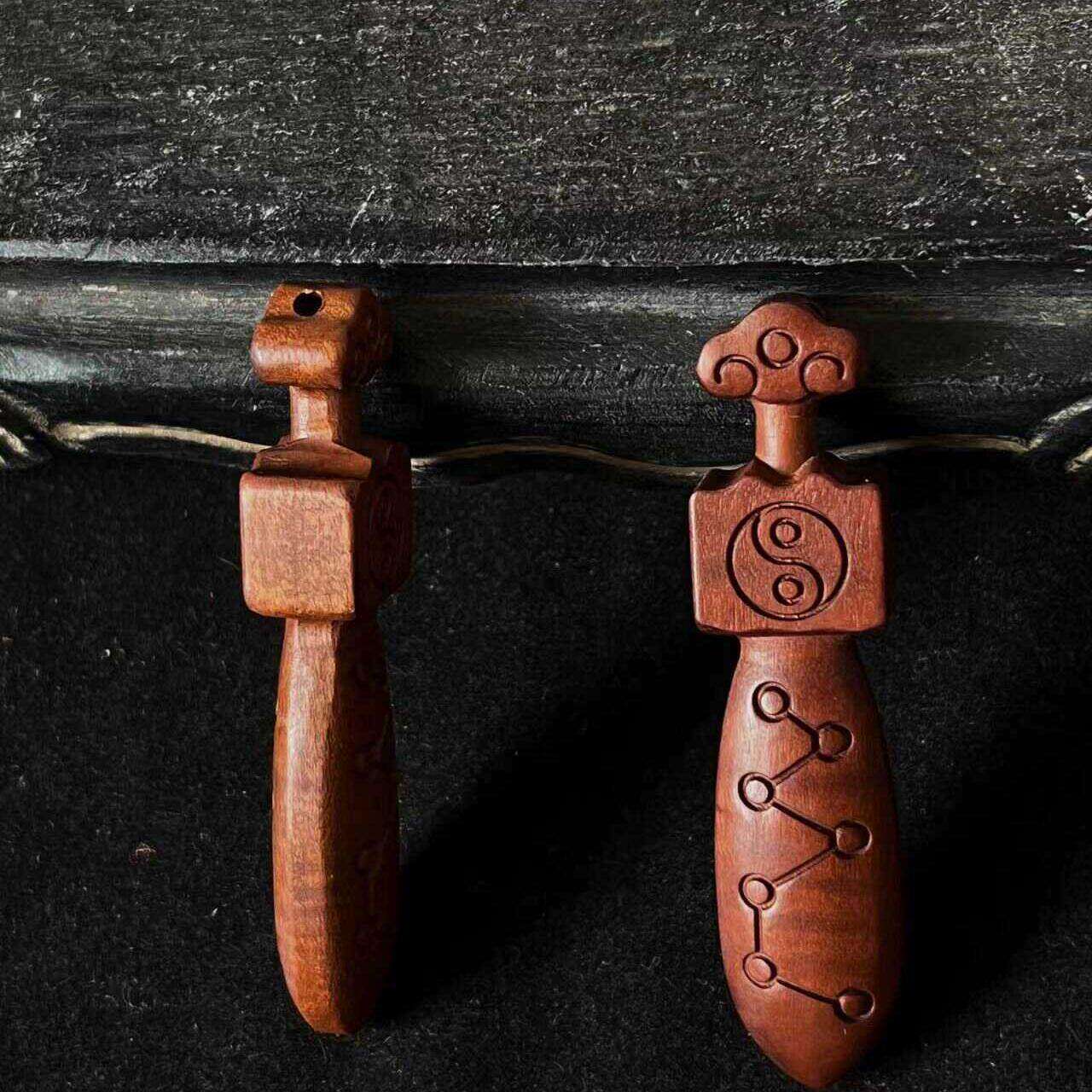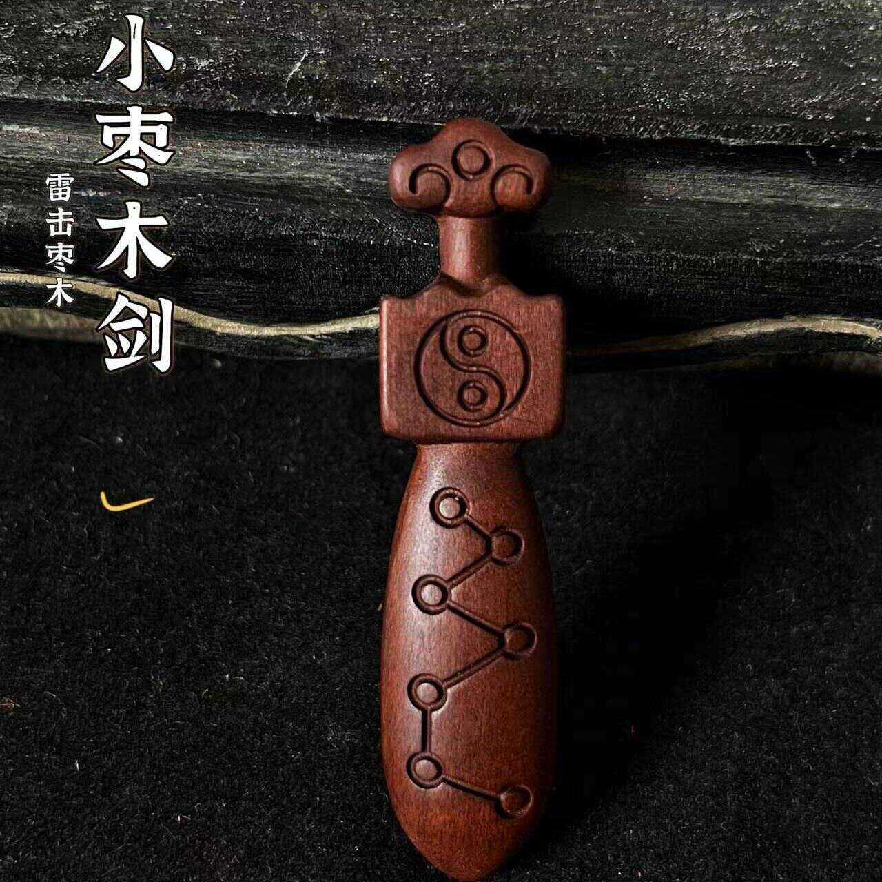 📚 龙虎山法物天然雷击木七星真道家枣木剑小挂件吊坠婴儿童护符