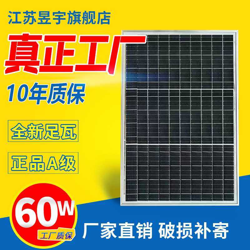 📚 60W瓦单晶硅光伏板太阳能足功率发电板可充12v伏蓄电池家用