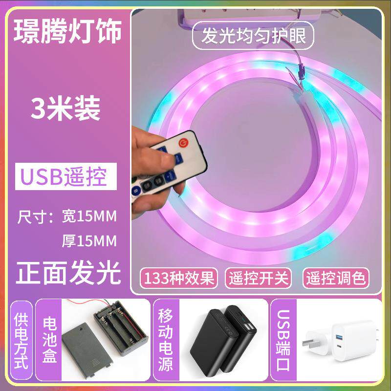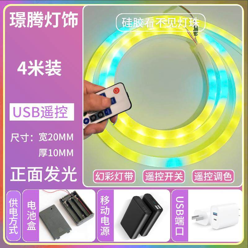 📚 USB灯带跑马流水追光灯条电池盒自粘贴片模型道具摆摊5V氛围灯