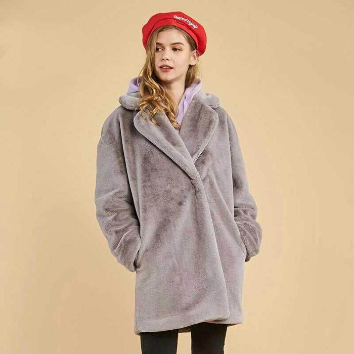 📚 艾格伊品专柜正品翻领仿皮草中长款大衣秋冬加厚外套女 8E0834035