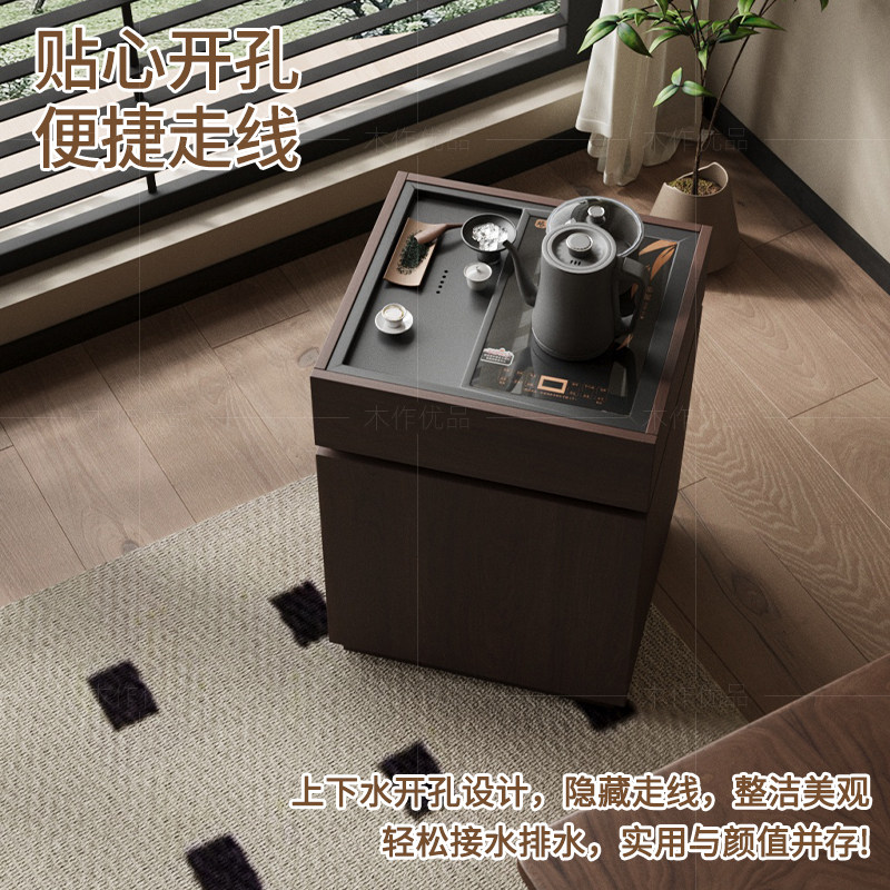 📚 中古风可移动茶水柜茶台边柜茶桌茶柜一体边几柜客厅沙发侧边柜子