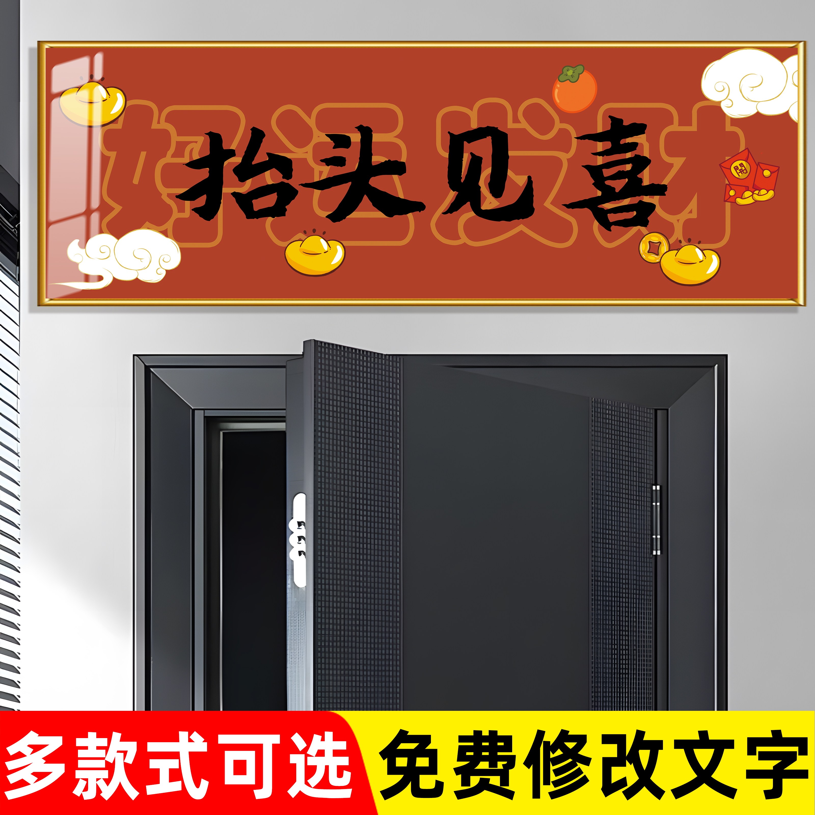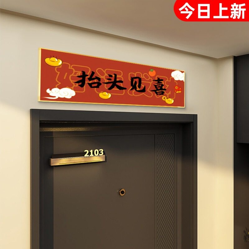 📚 入户门口出入平安抬头见喜门口上头墙贴纸横批新年装饰财神爷画hb