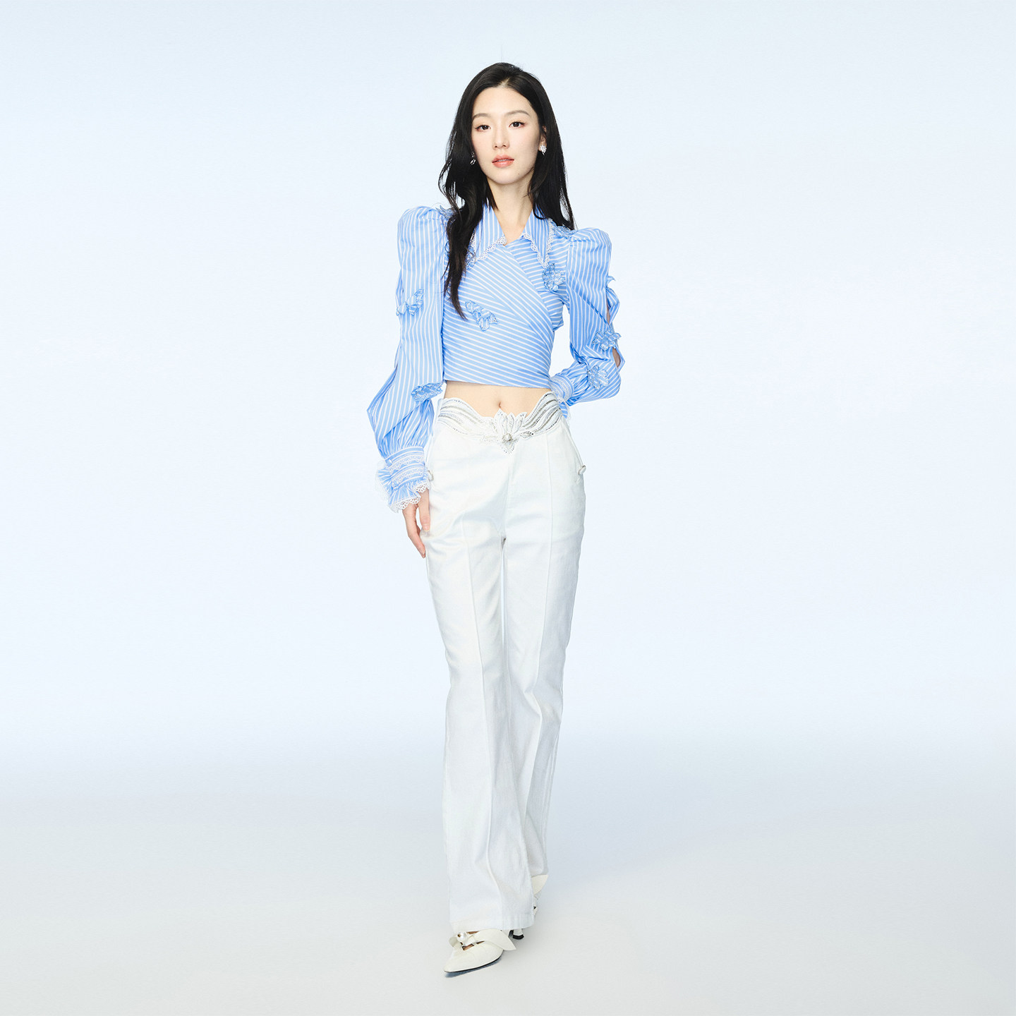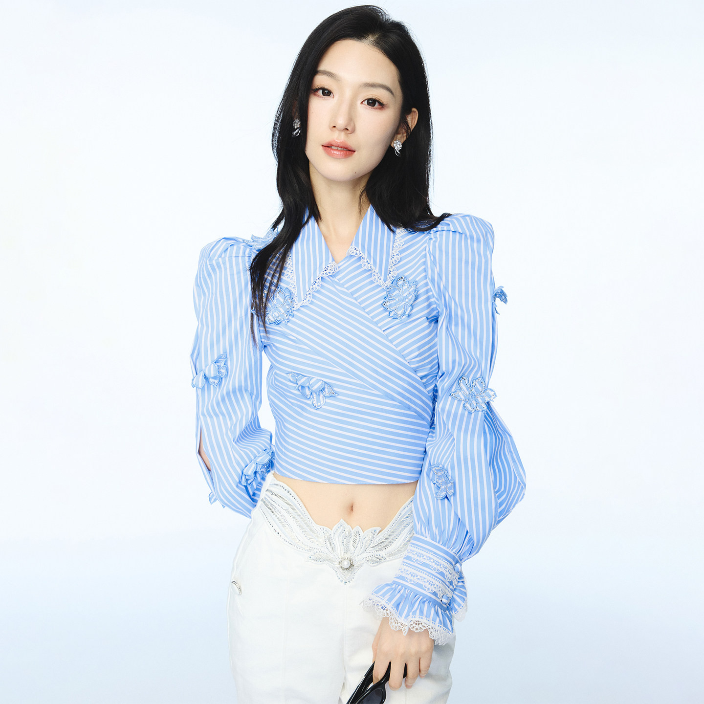 📚 【明星同款】lefame拉飞姆春夏新品花卉蓝色条纹长袖衬衫海军风女